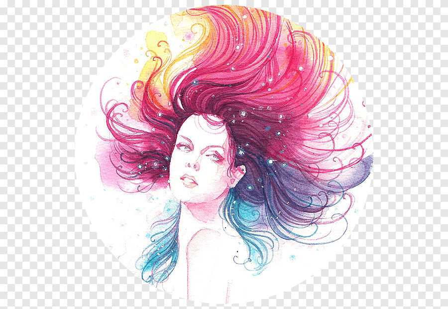 ![Девушка волосы акварель]()