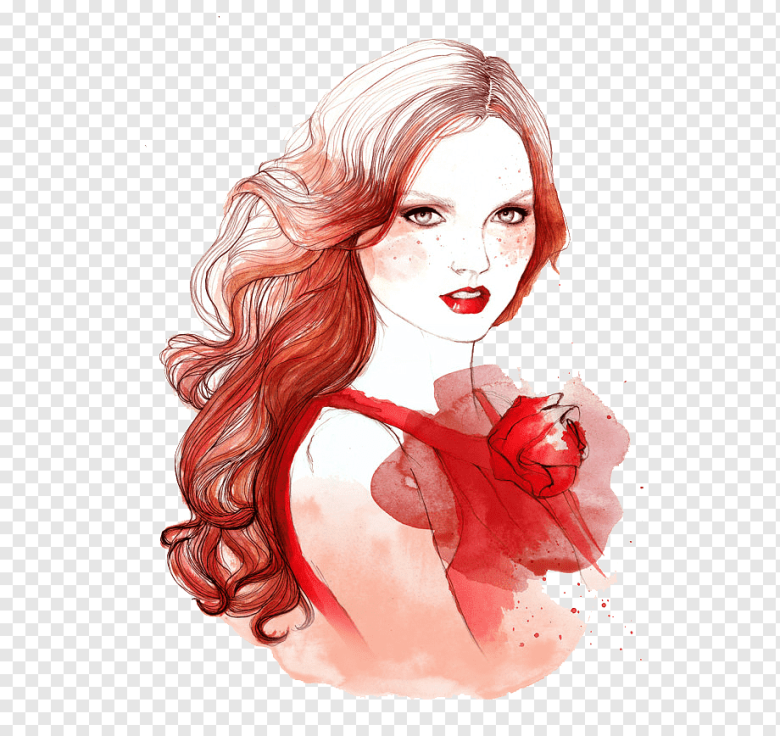 ![Рыжеволосая женщина акварель рисунки]()
