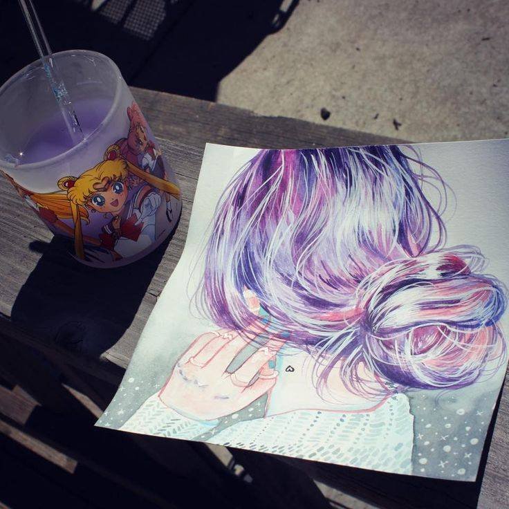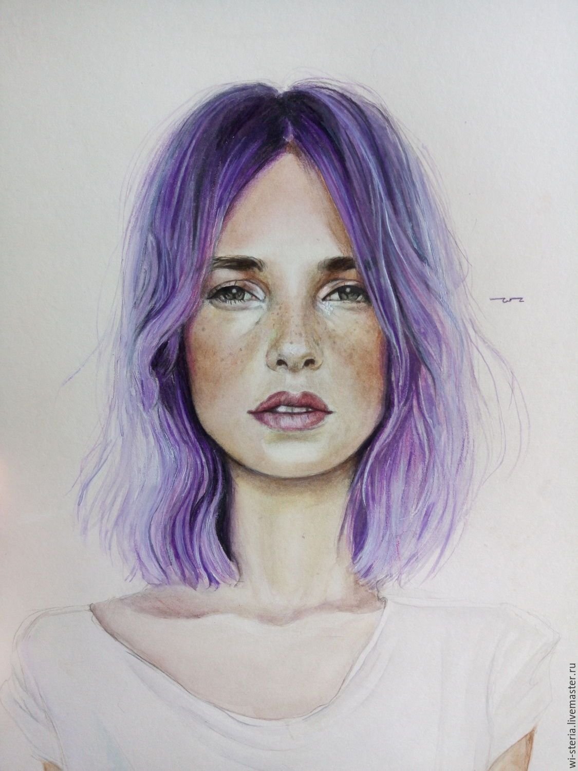 ![Фиолетовые волосы акварелью]()
