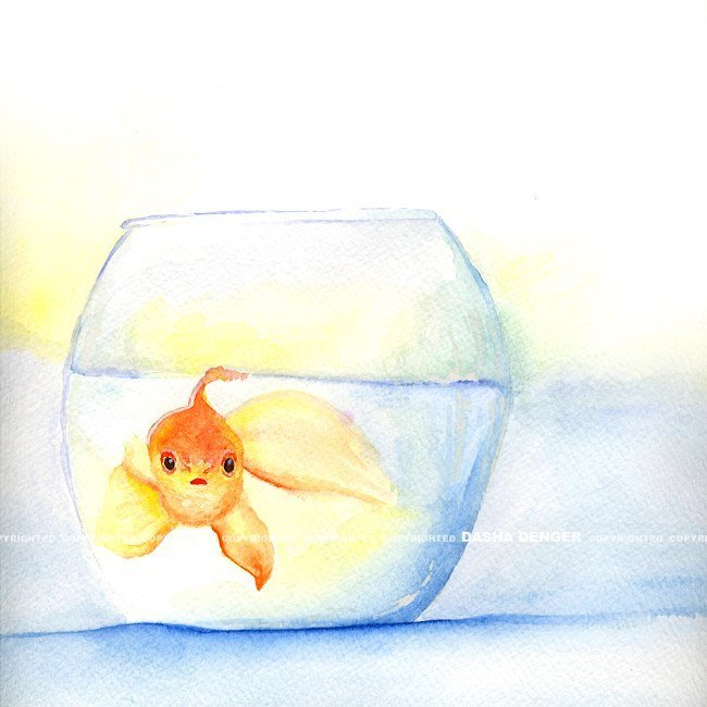 ![Акварель рыбки в аквариуме]()