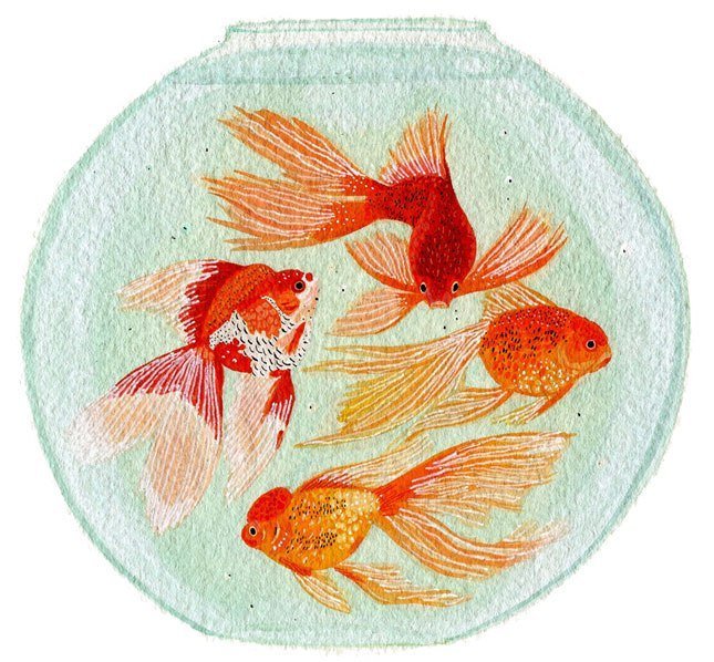 ![Золотая рыбка акварель]()