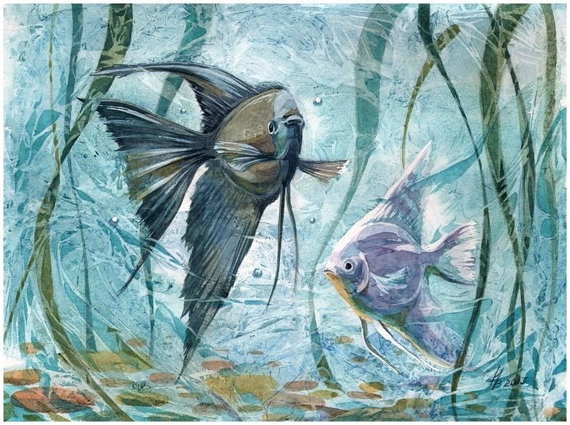 Аквариумные рыбки акварелью