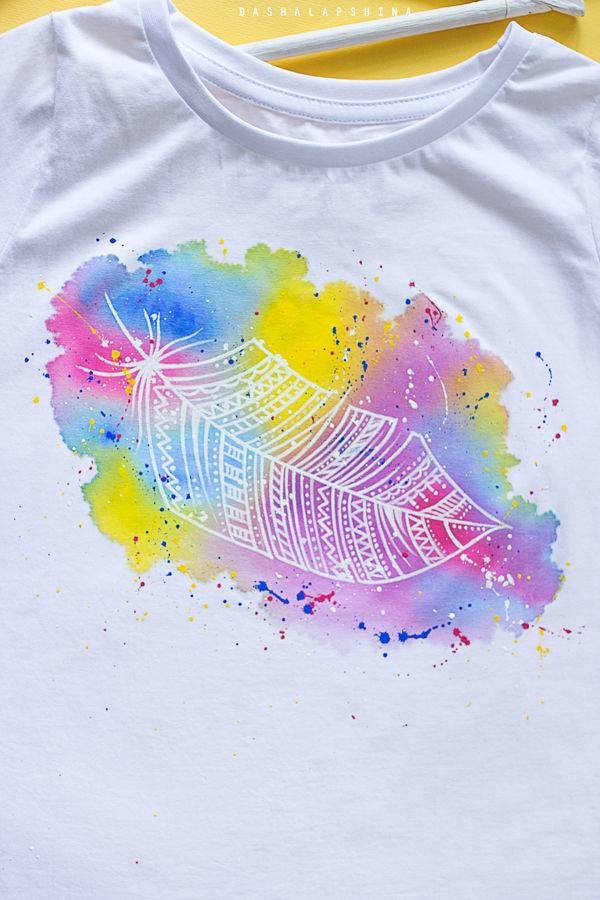 ![Рисование акварелью на футболке]()