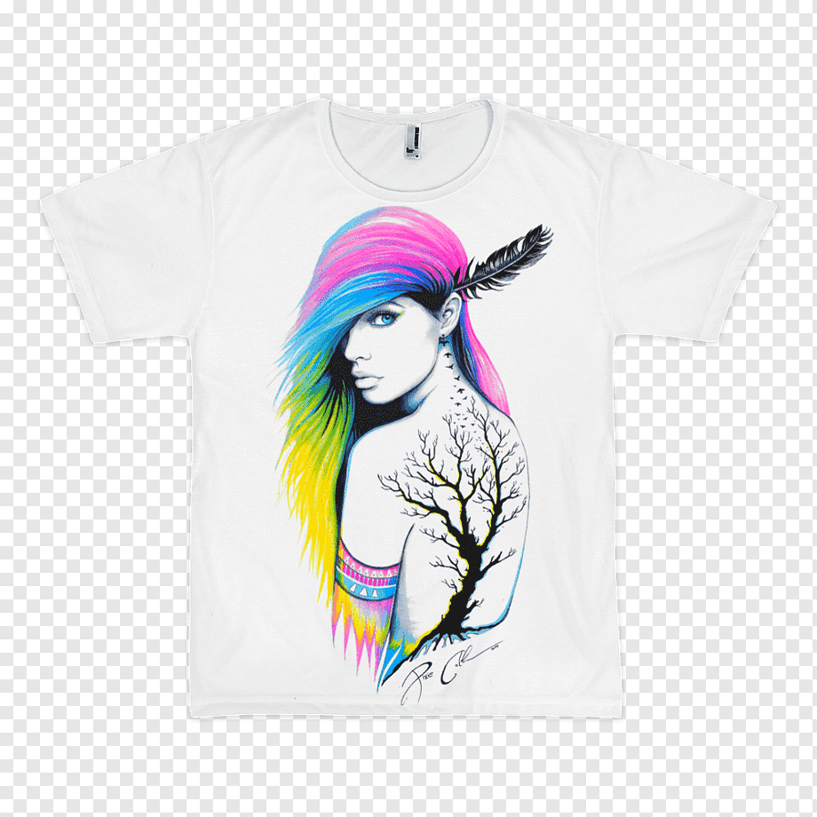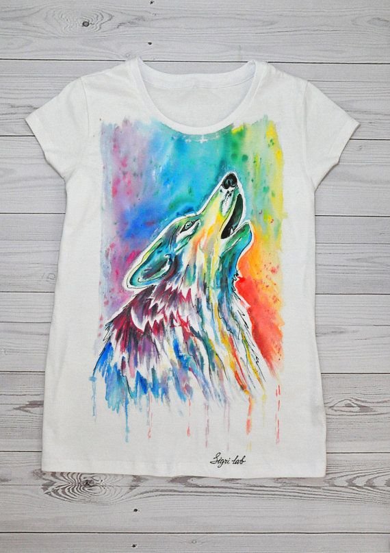 ![Акварельный рисунок на футболке]()