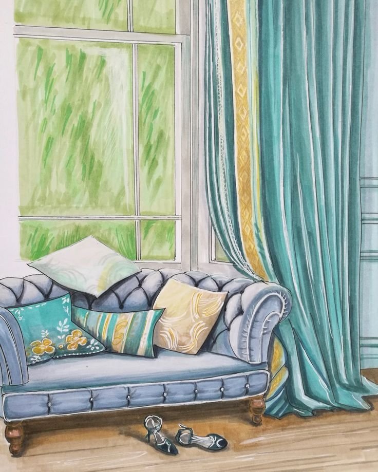 ![Текстиль в интерьере скетчинг]()