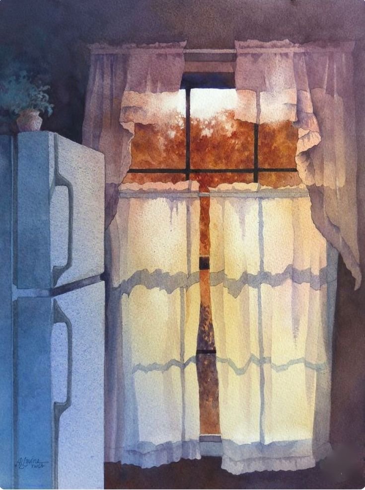 ![Шторы рисунок акварелью]()