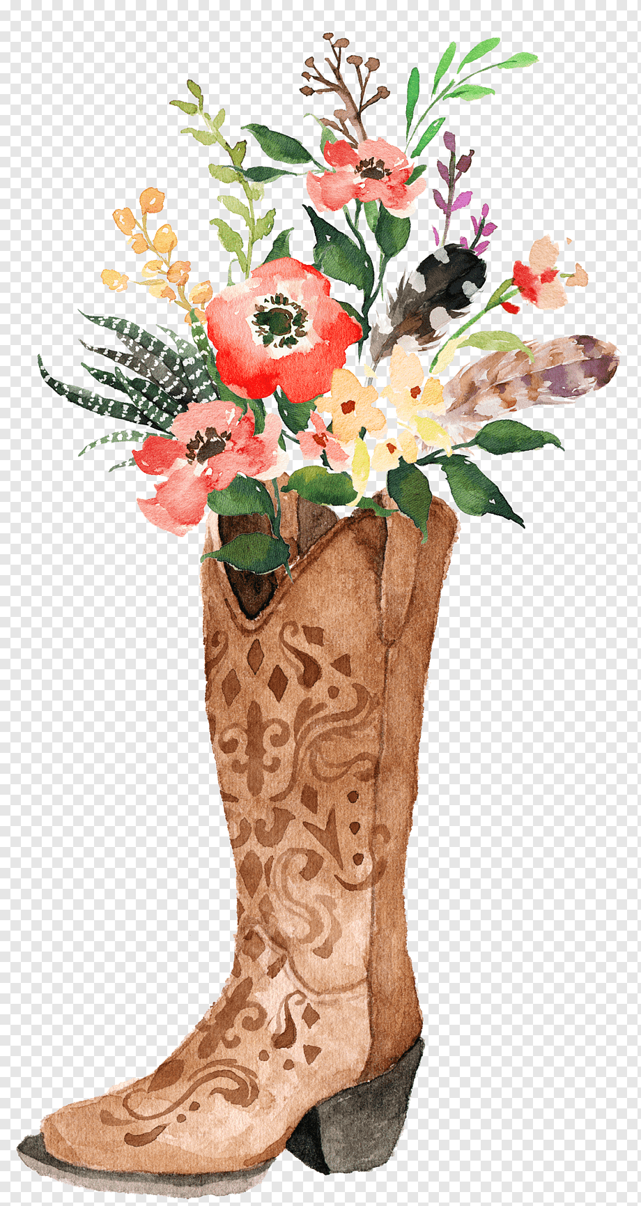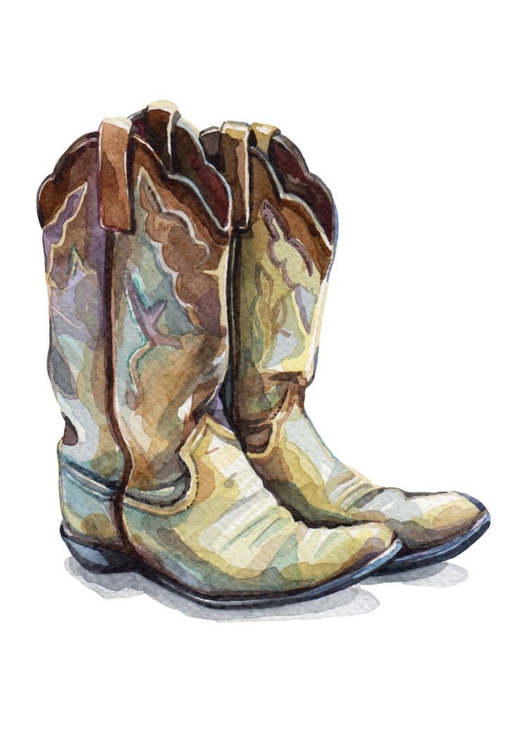 ![Ковбойские сапоги акварель]()