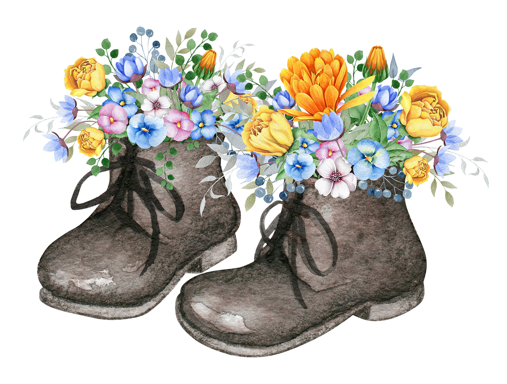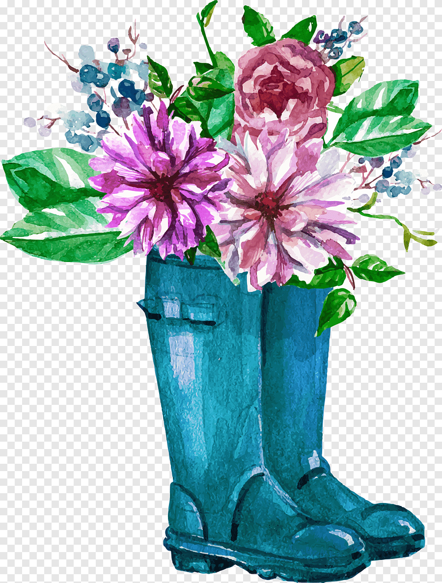 Цветы в сапогах акварель