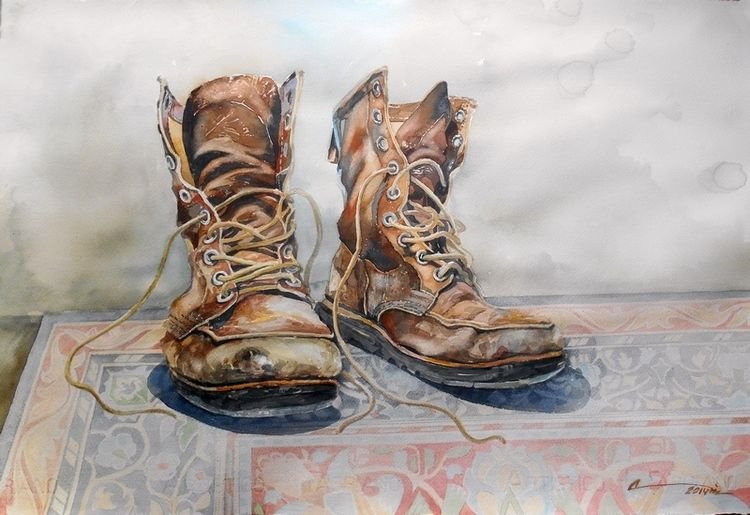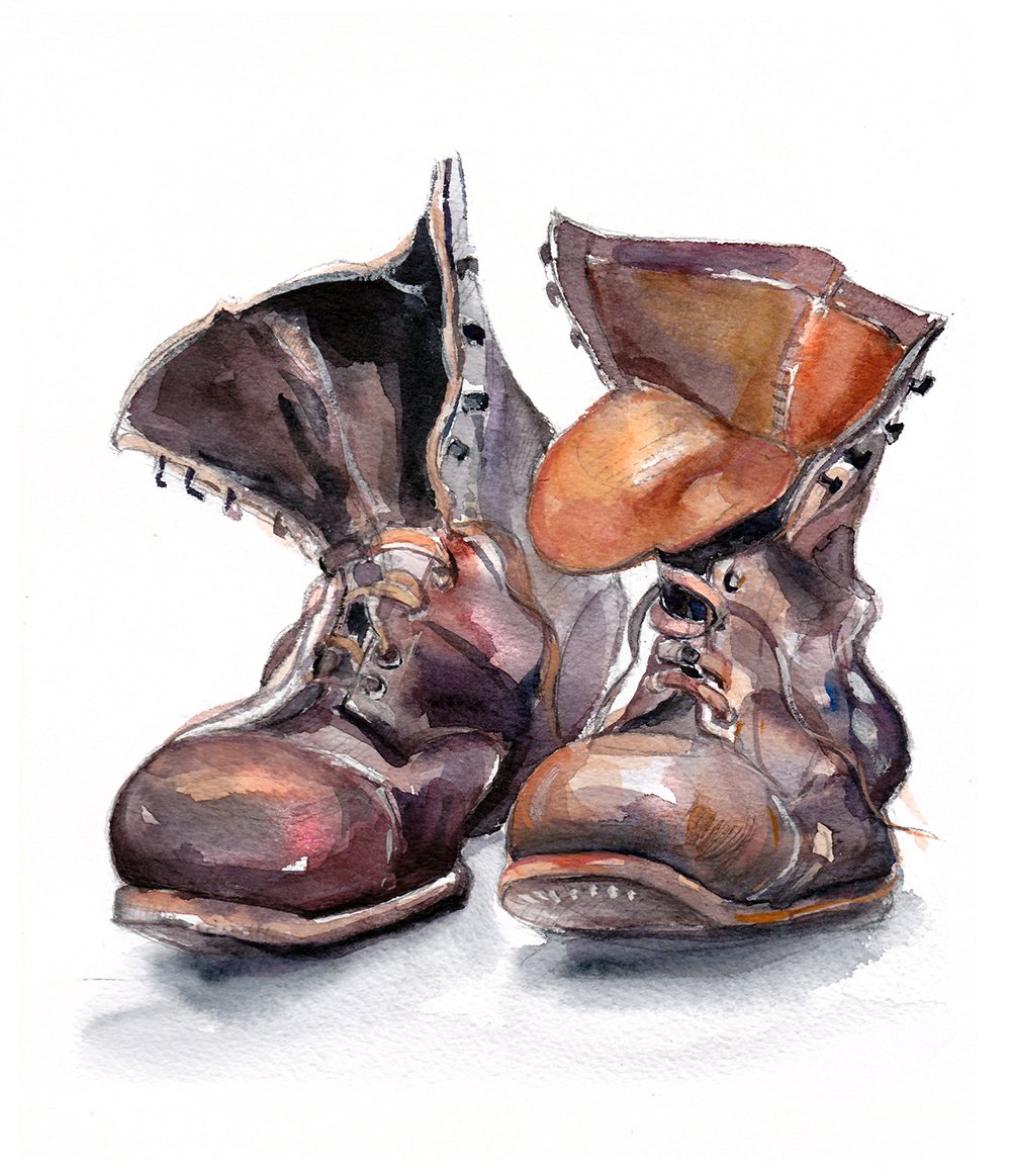 Старые ботинки акварель