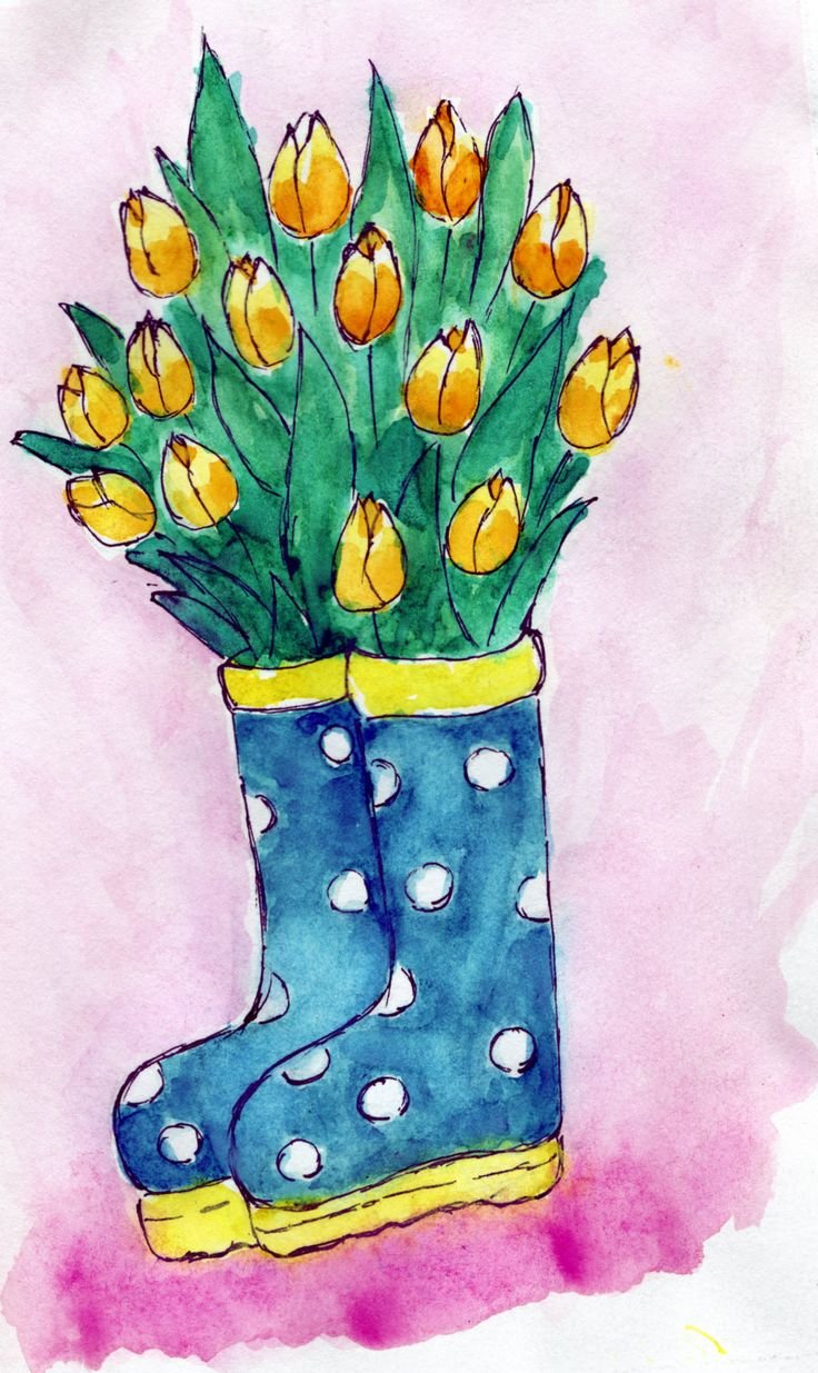 ![Тюльпаны в сапогах акварель]()