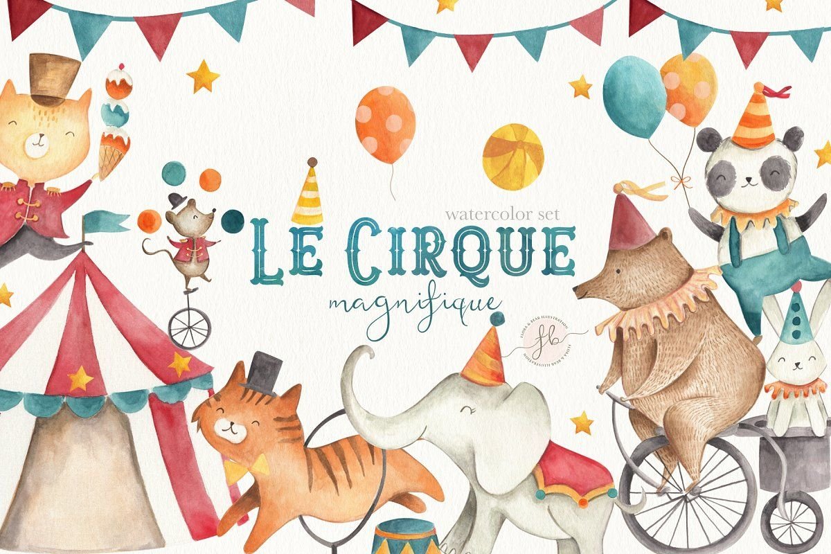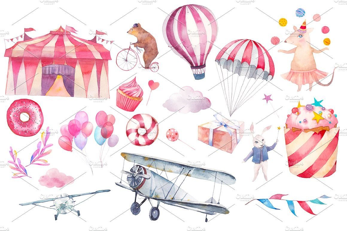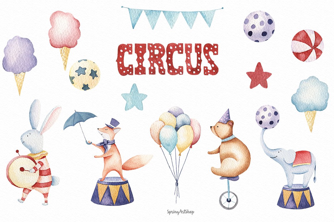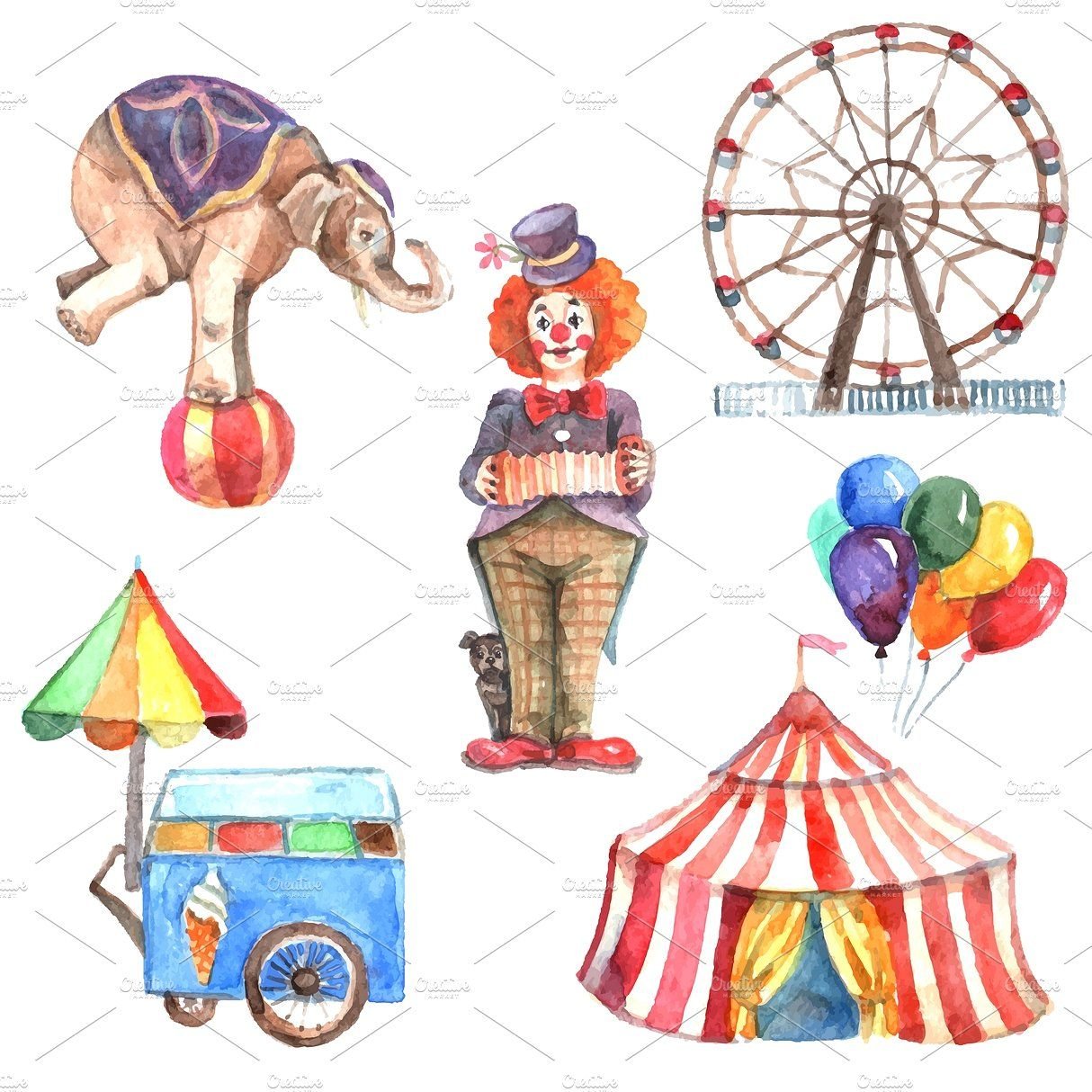Цирк клипарт акварель