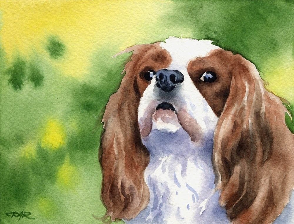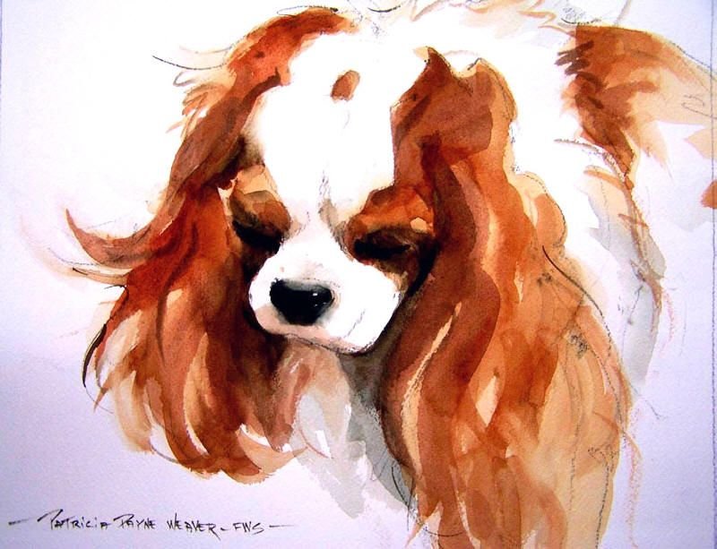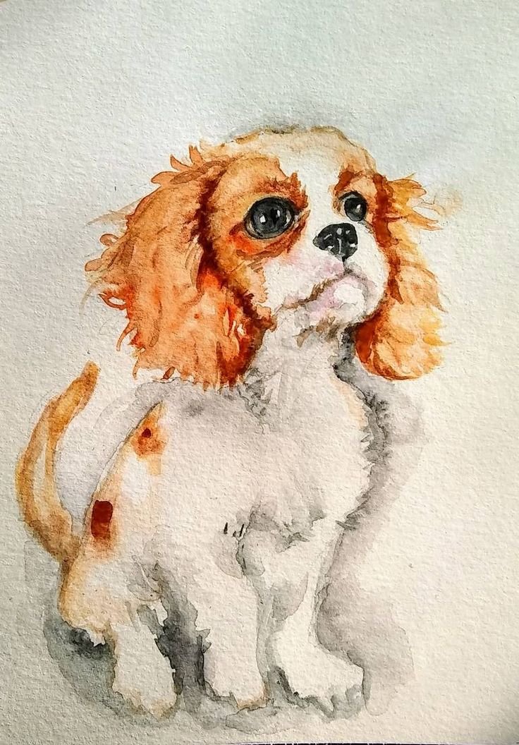 ![Кавалер Кинг Чарльз спаниель акварелью]()