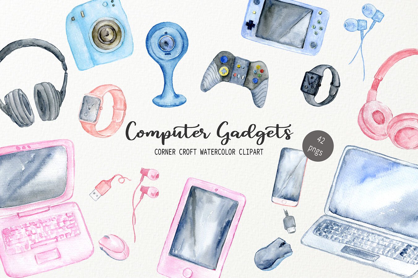 ![Ноутбук компьютер акварелью]()