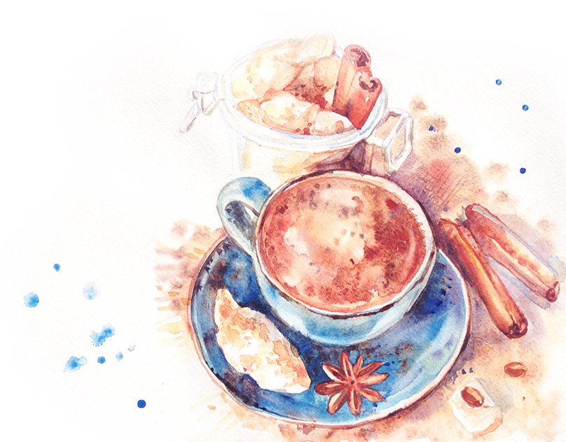 ![Кружка кофе акварелью]()