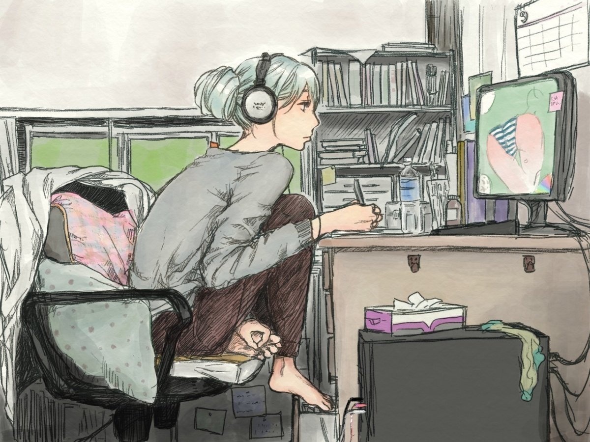 ![Человек за компьютером арт]()