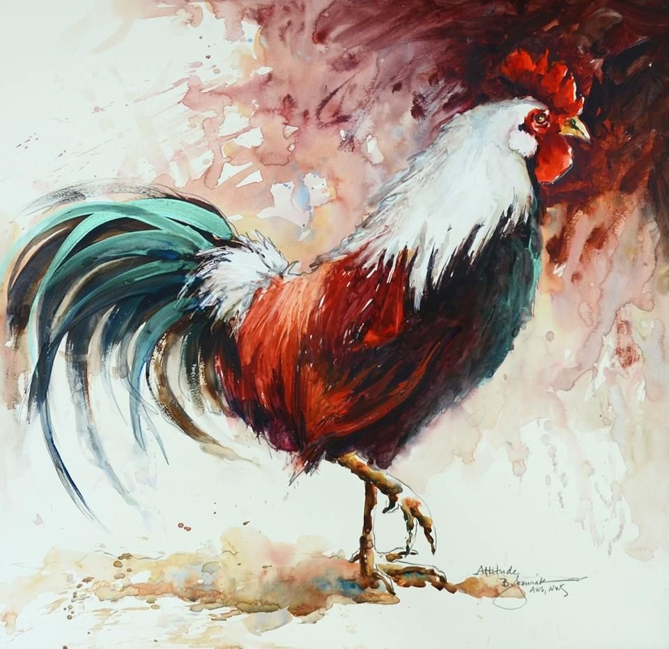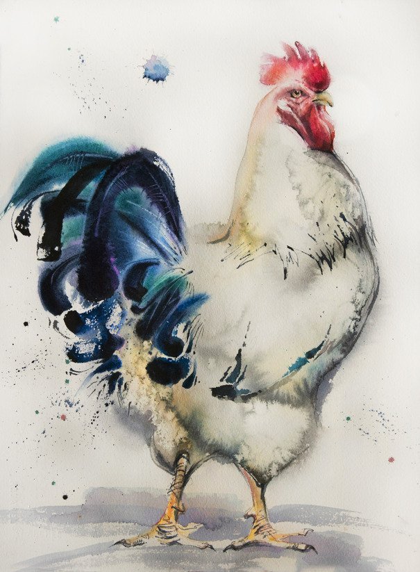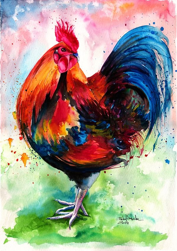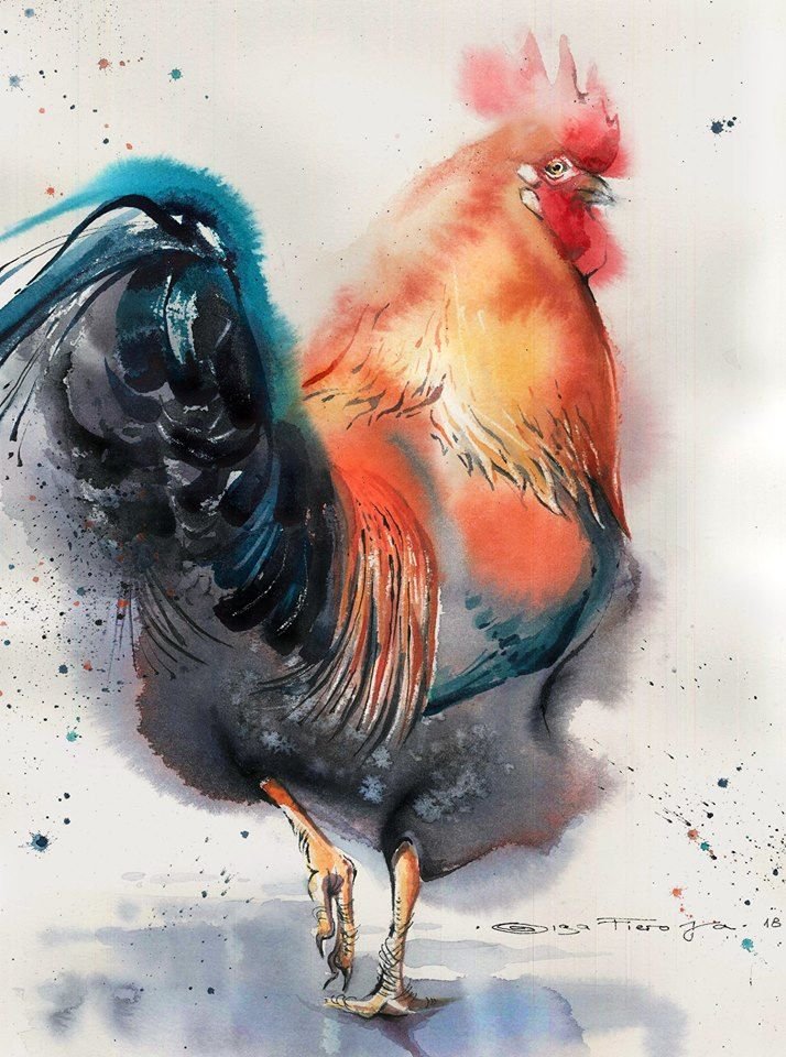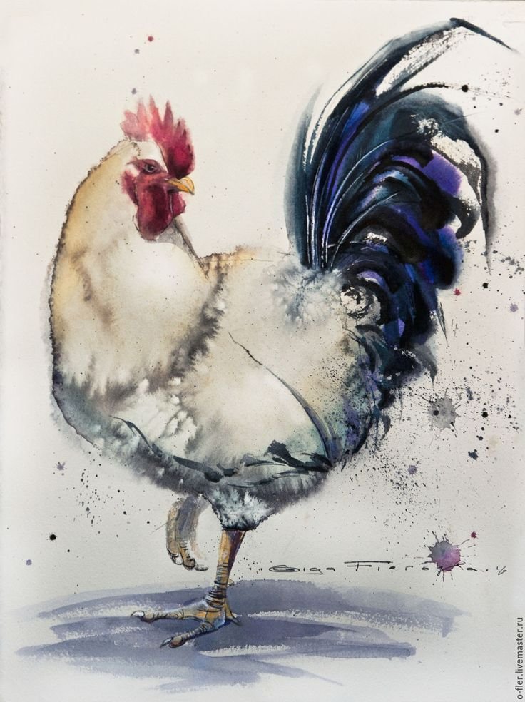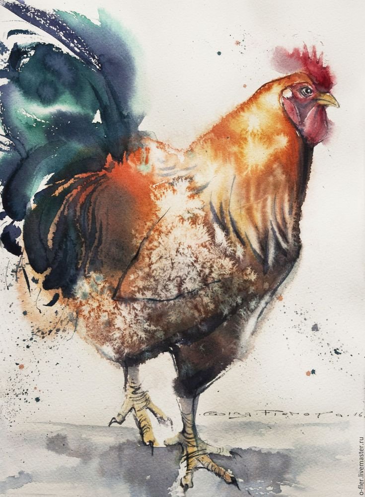 ![Петух живопись акварелом]()