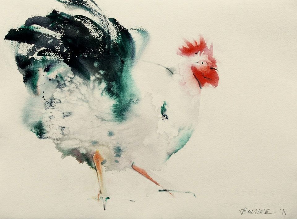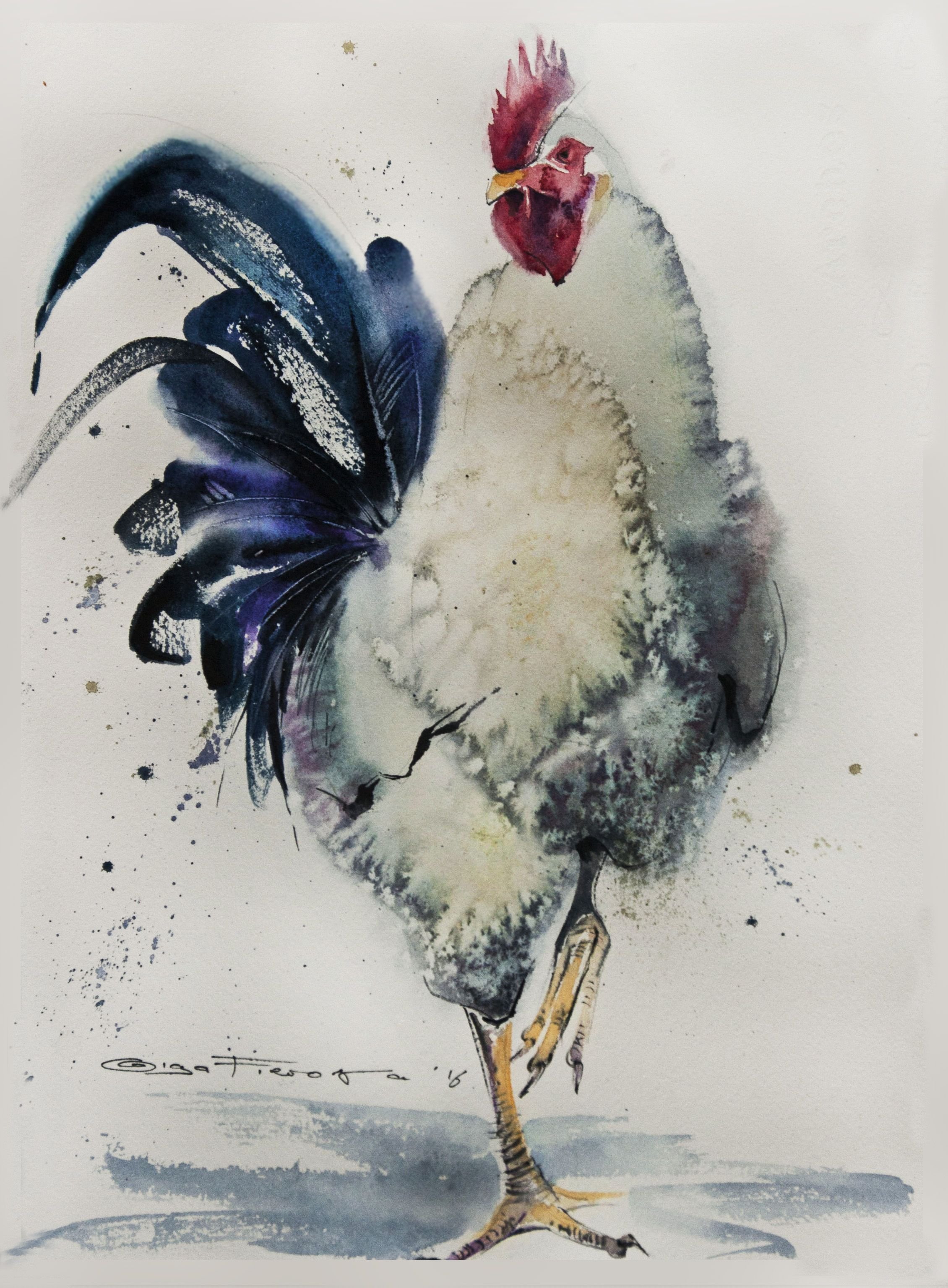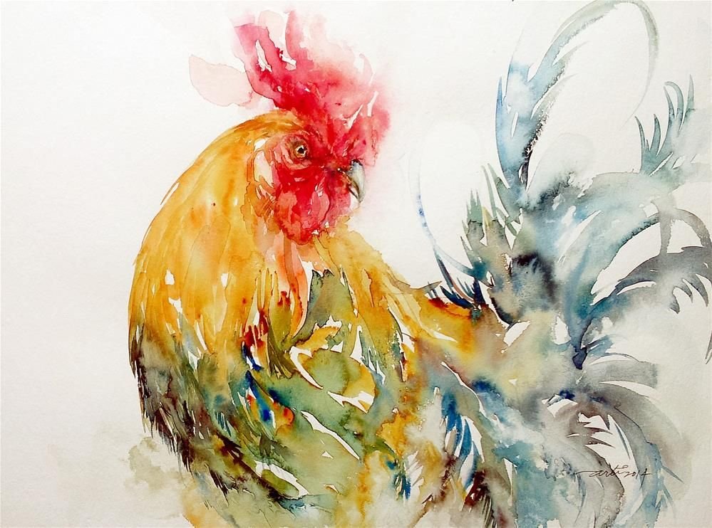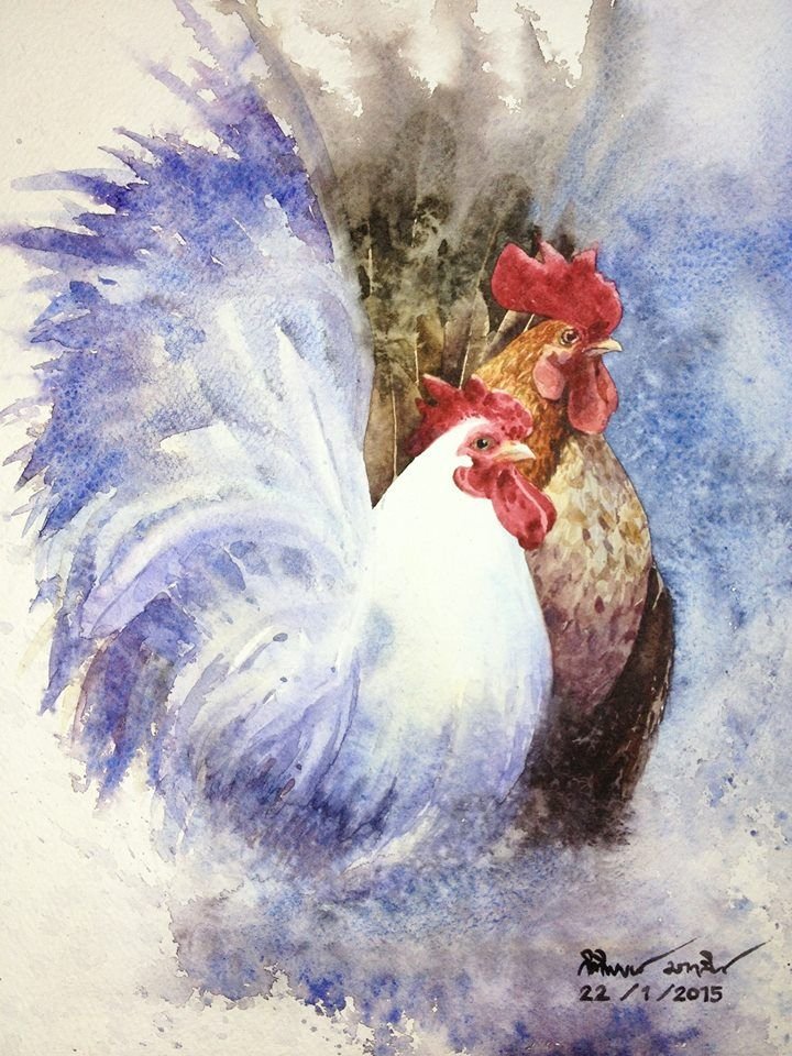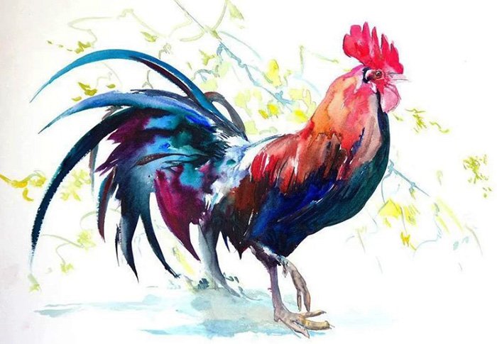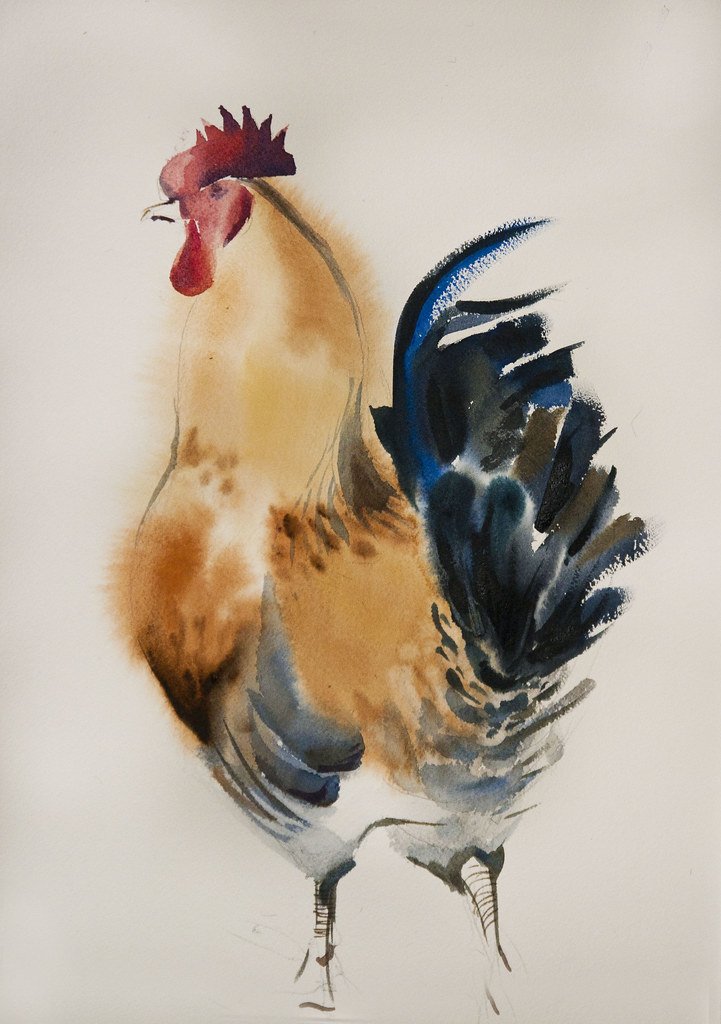 ![Петух живопись акварелом]()