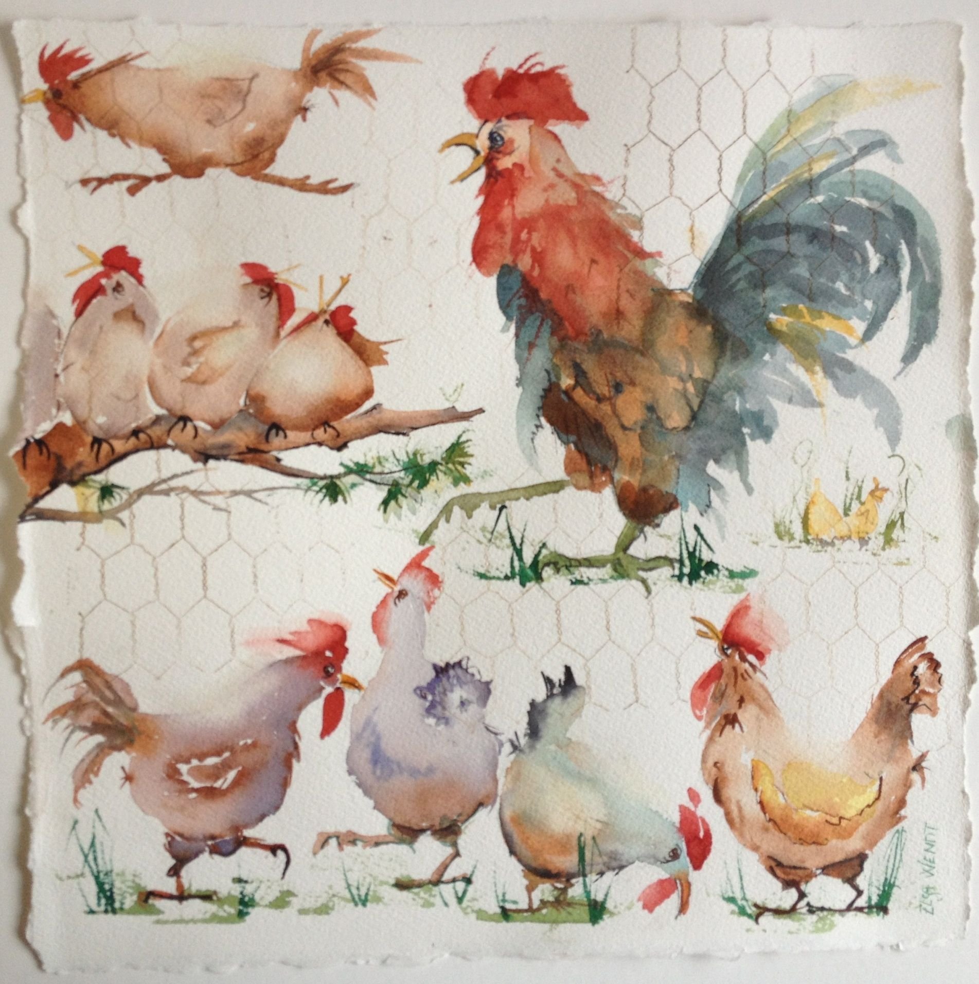 ![Куры акварелью]()
