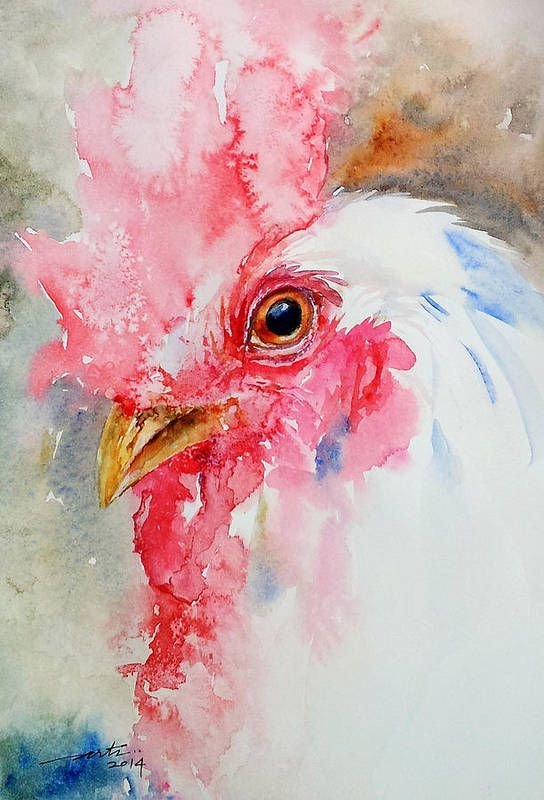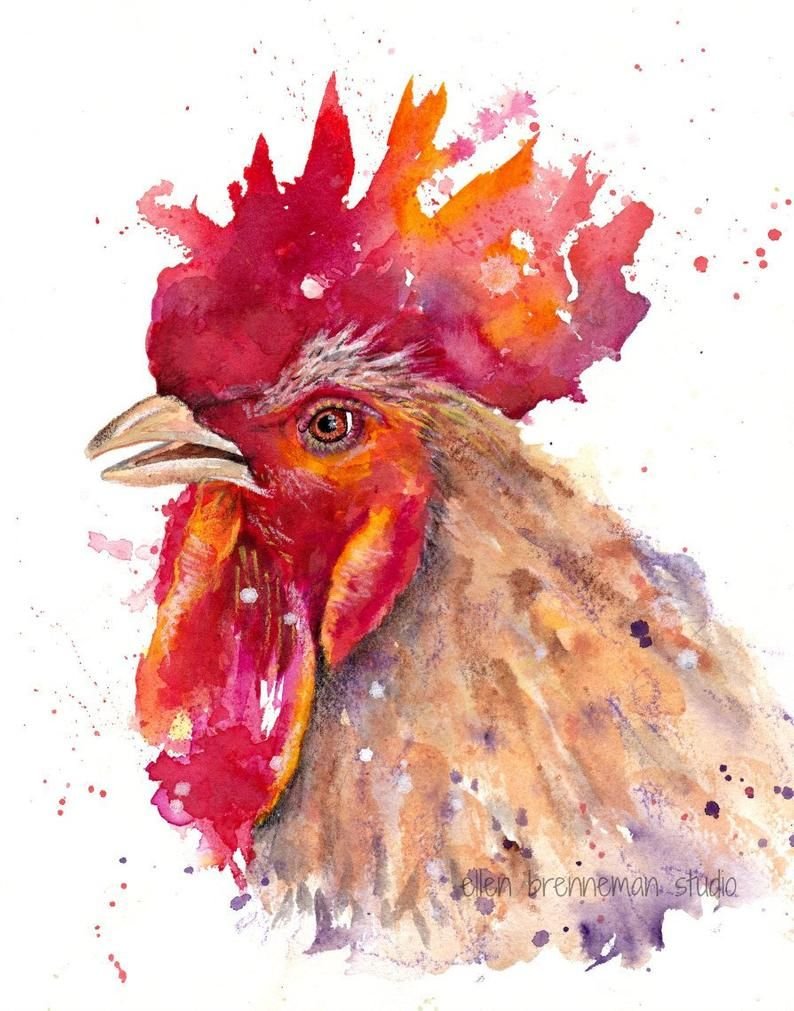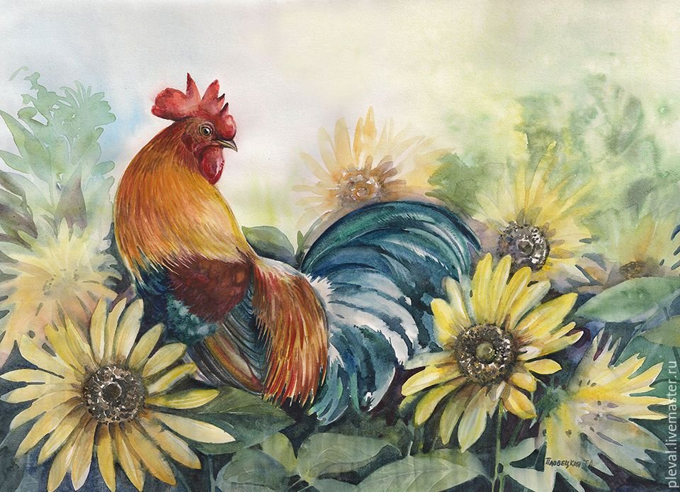 ![Петух живопись акварелью]()