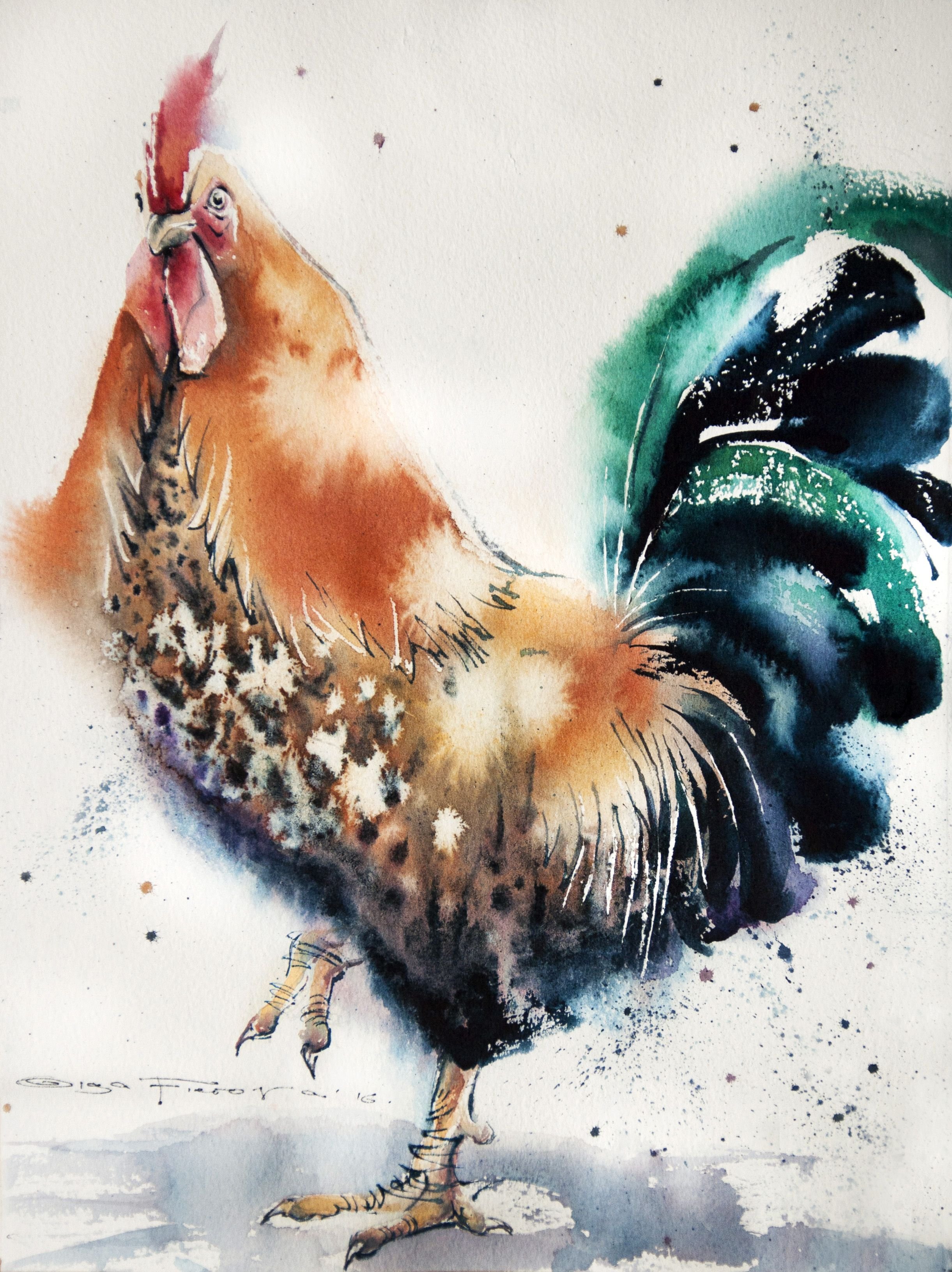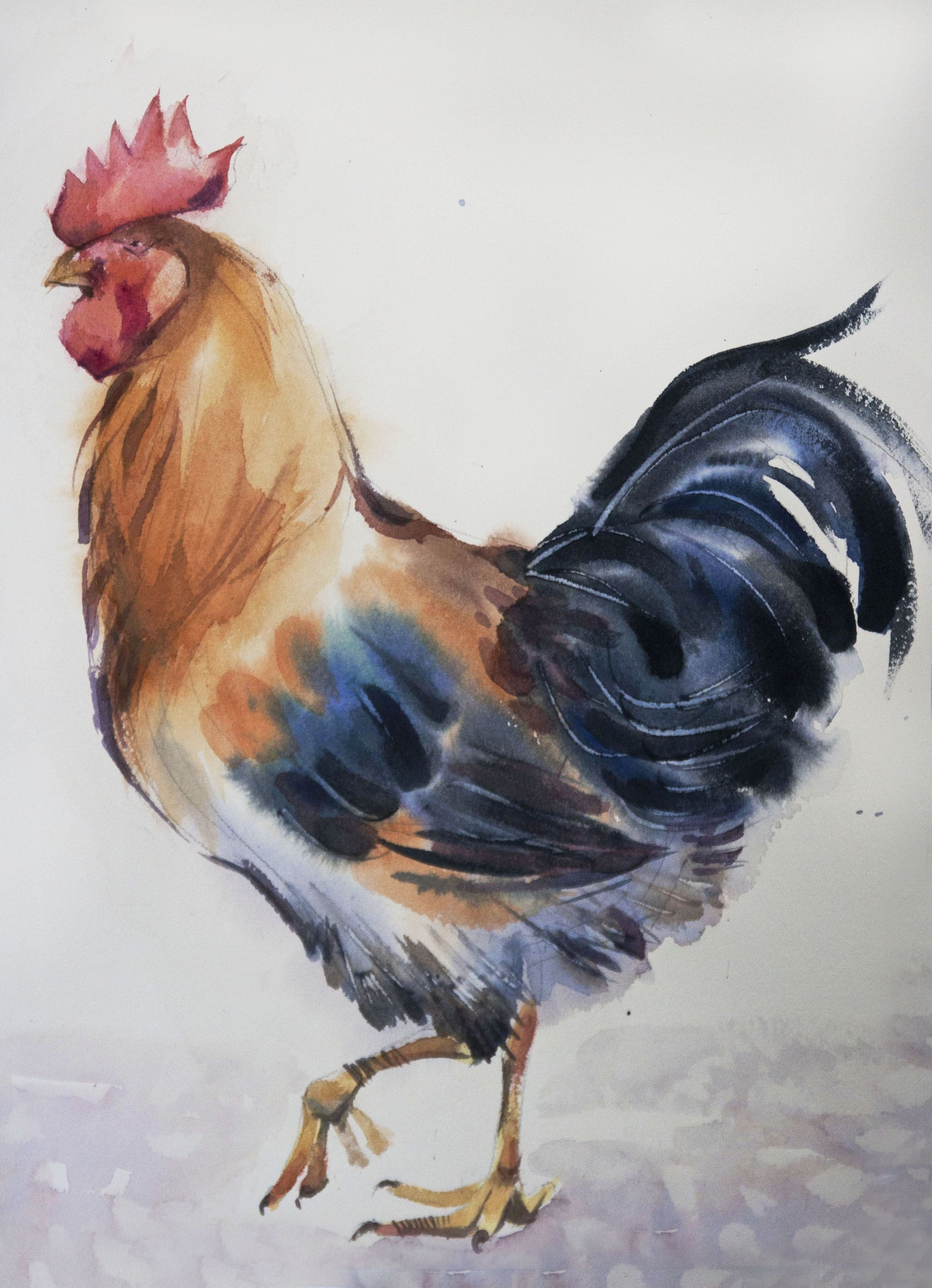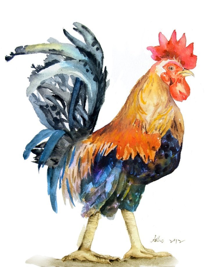 ![Петух акварелью]()