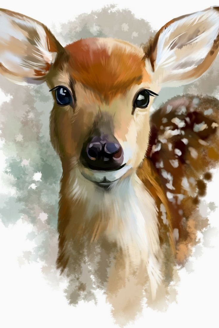 ![Акварель оленёнок мордочка]()