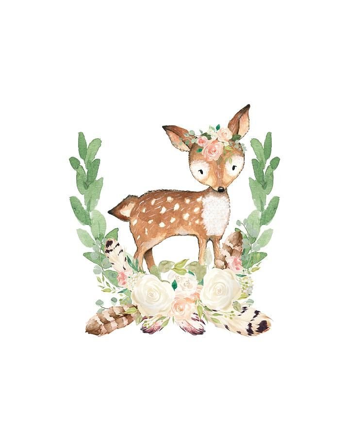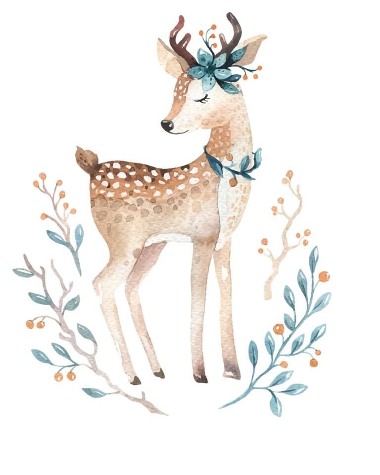 ![Милый олень акварель]()
