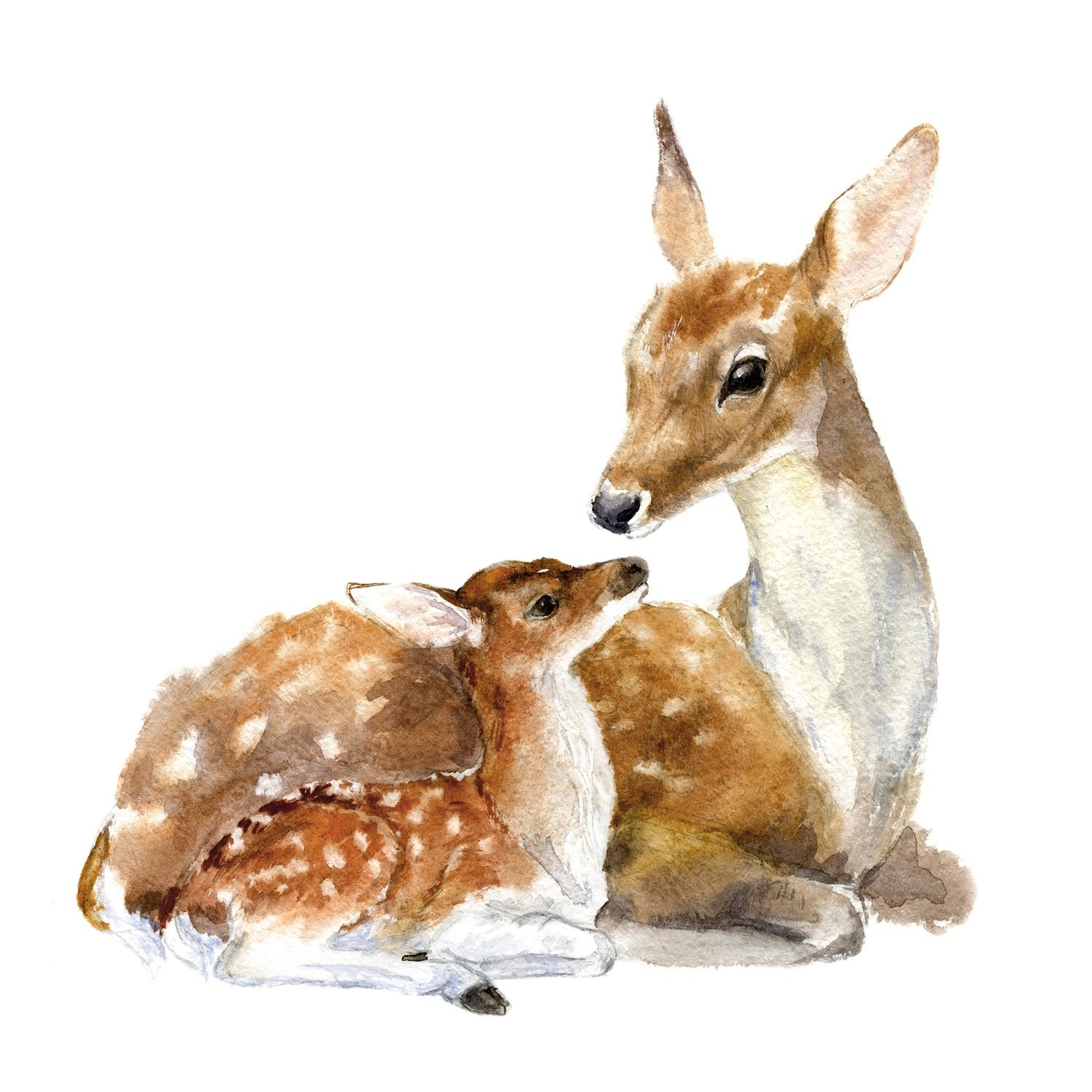 ![Олениха с олененком акварель]()