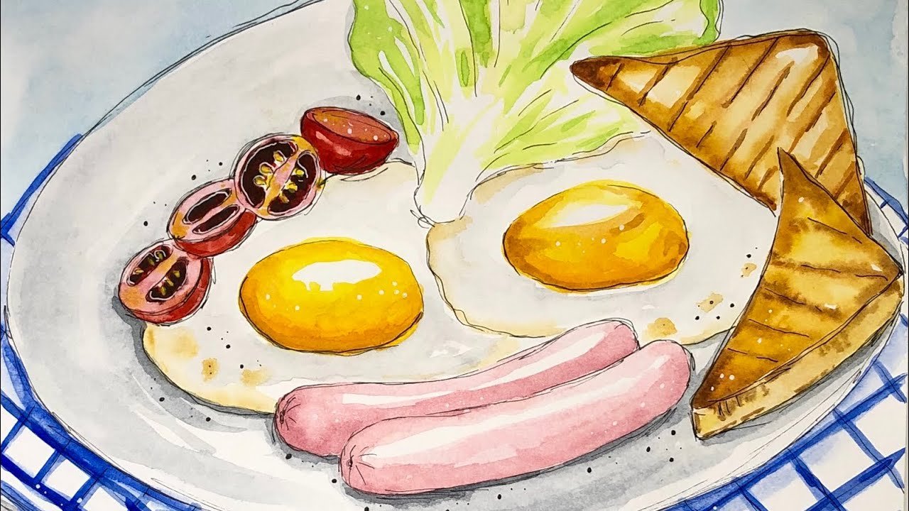 Еда акварелью завтрак