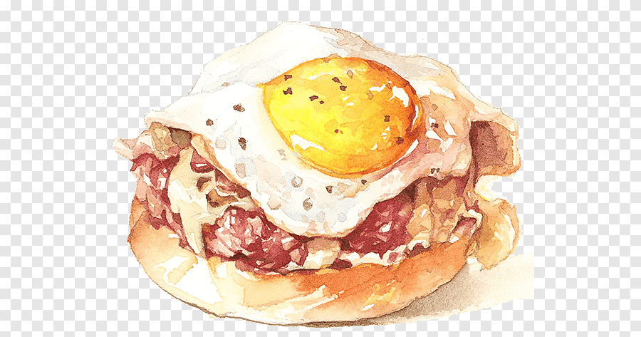 ![Яичница с беконом акварель]()