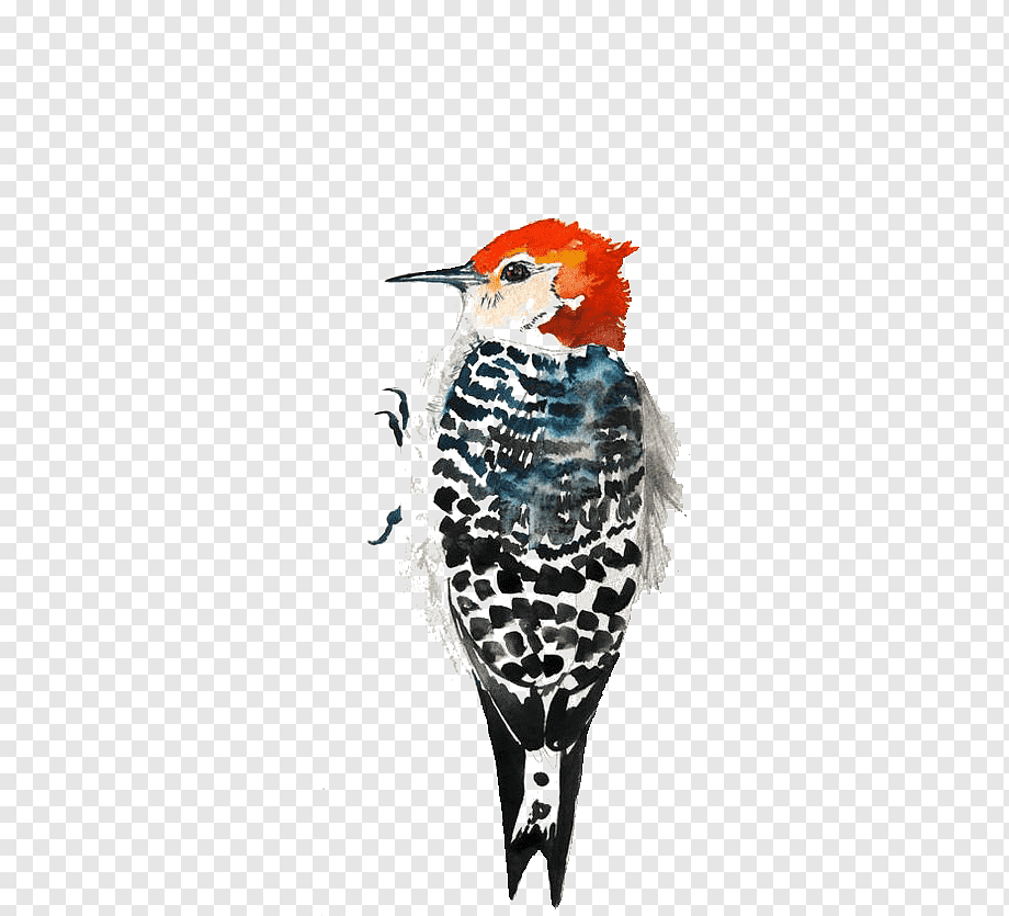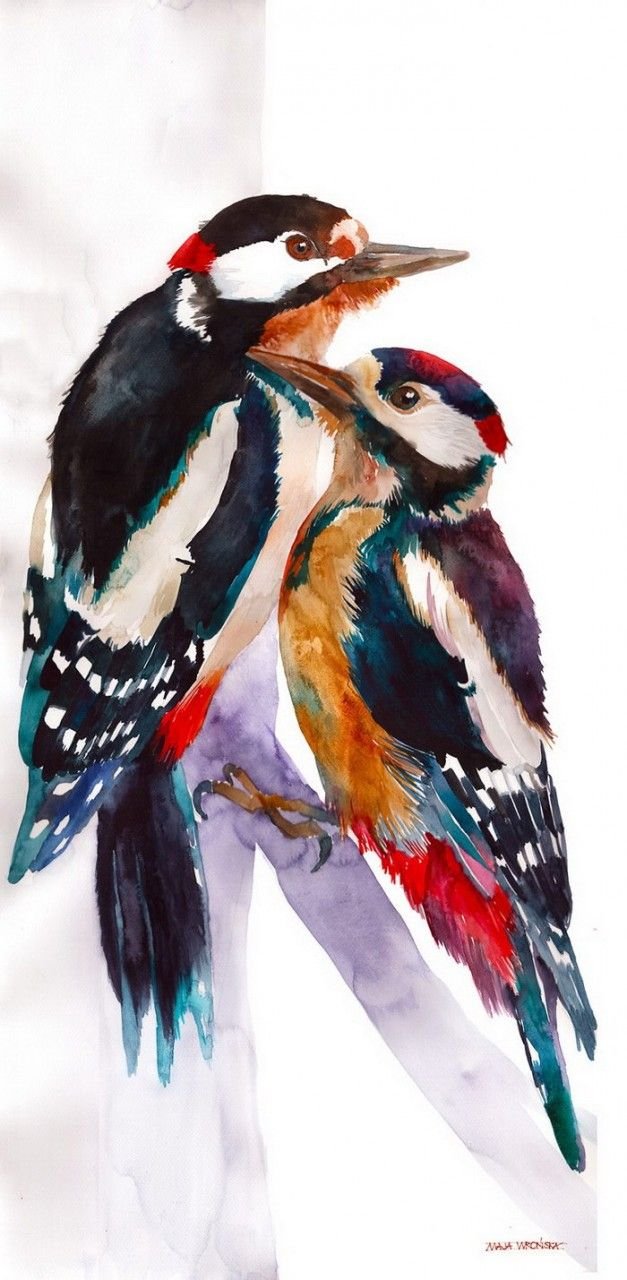 ![Птицы дятел акварелью]()