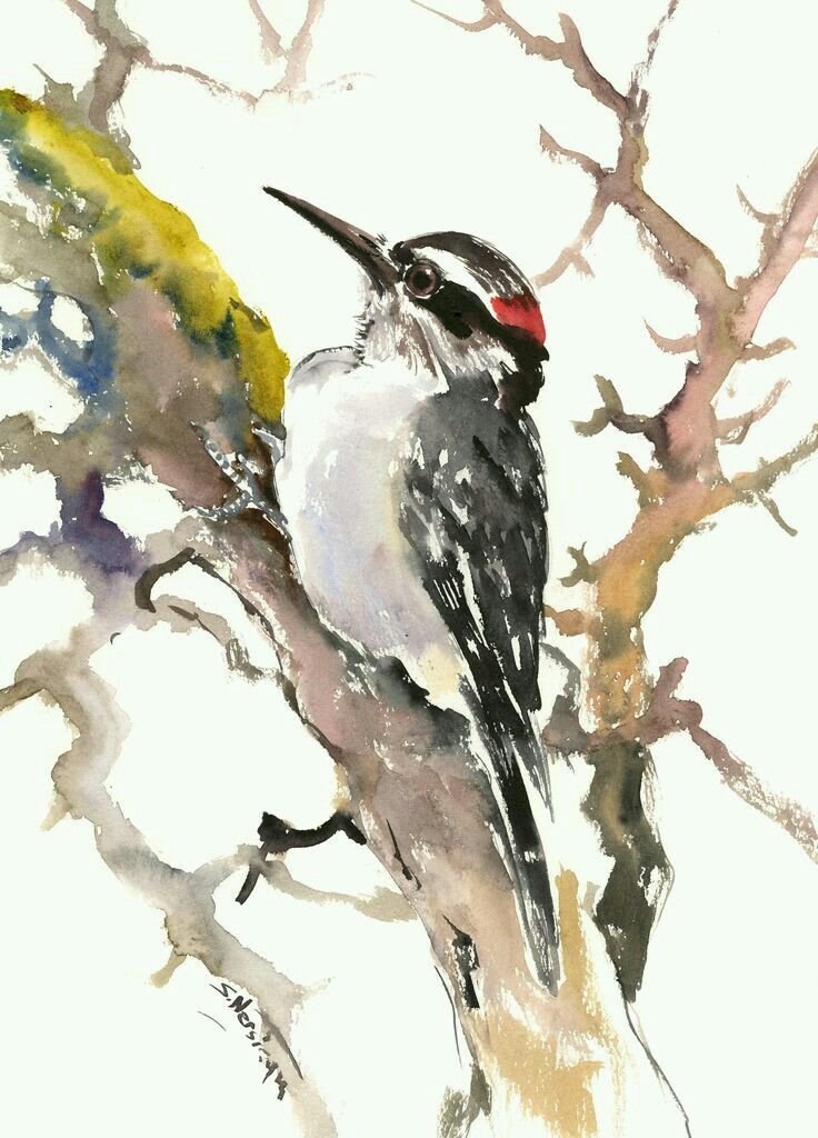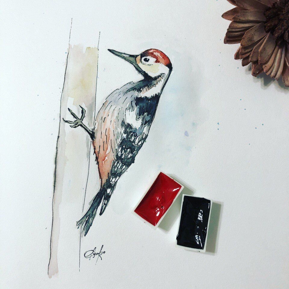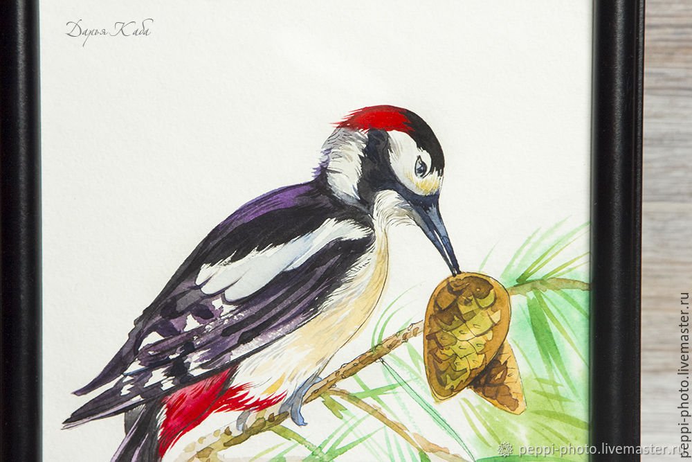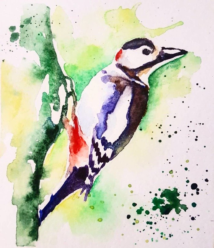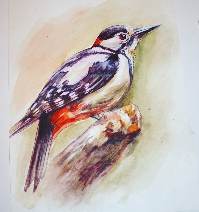 ![Дятел акварелью]()