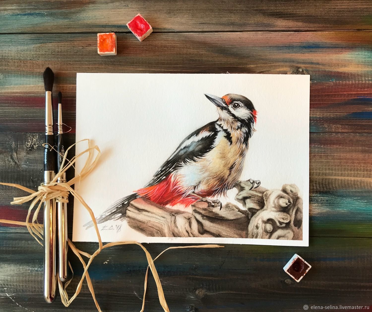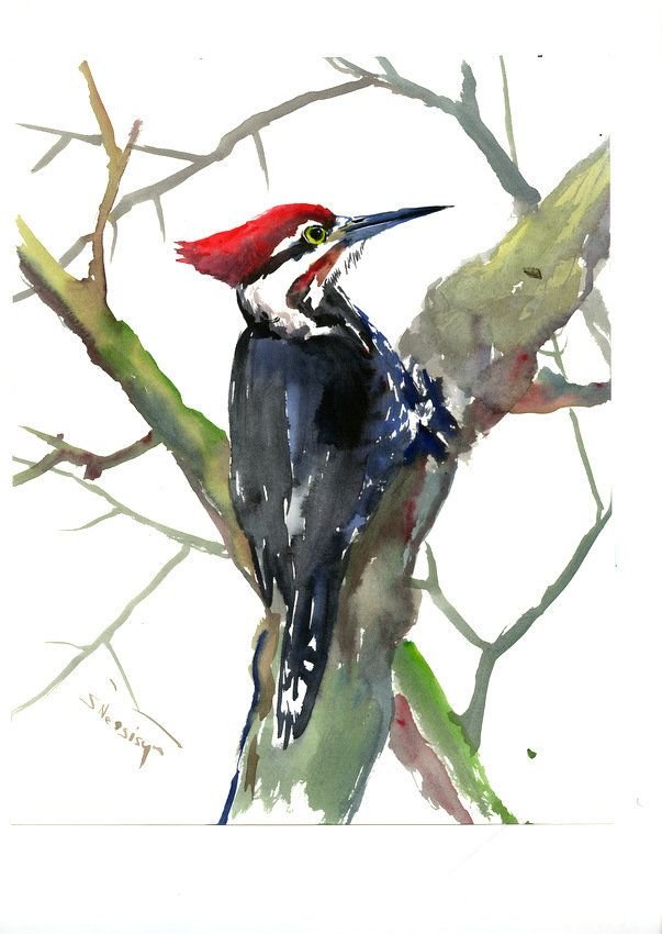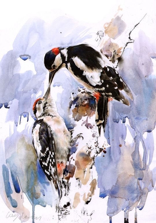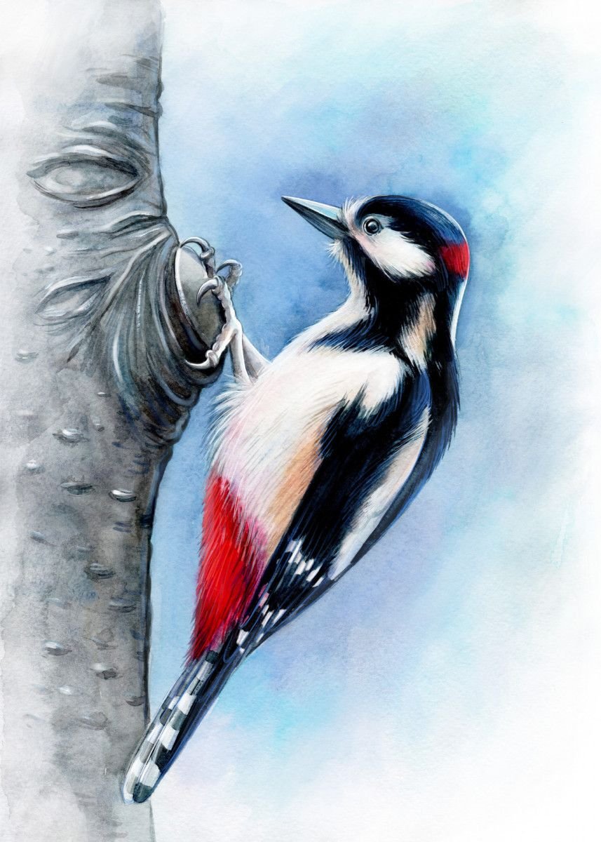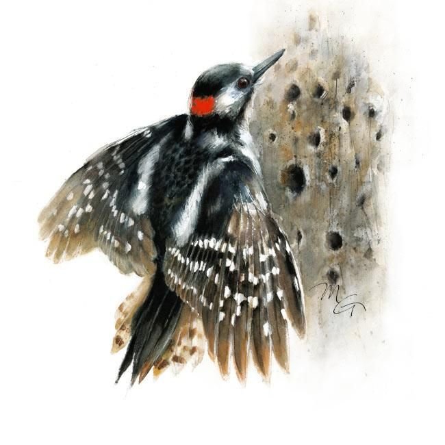 ![Дятел акварелью]()