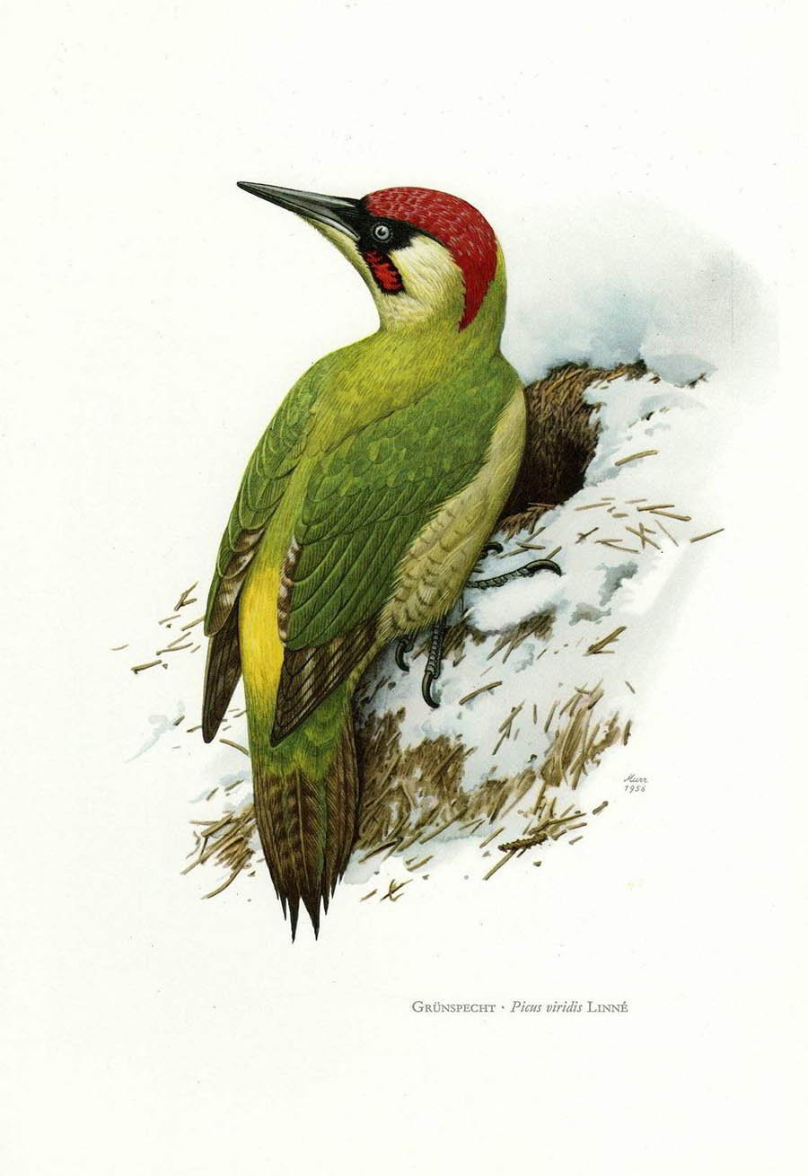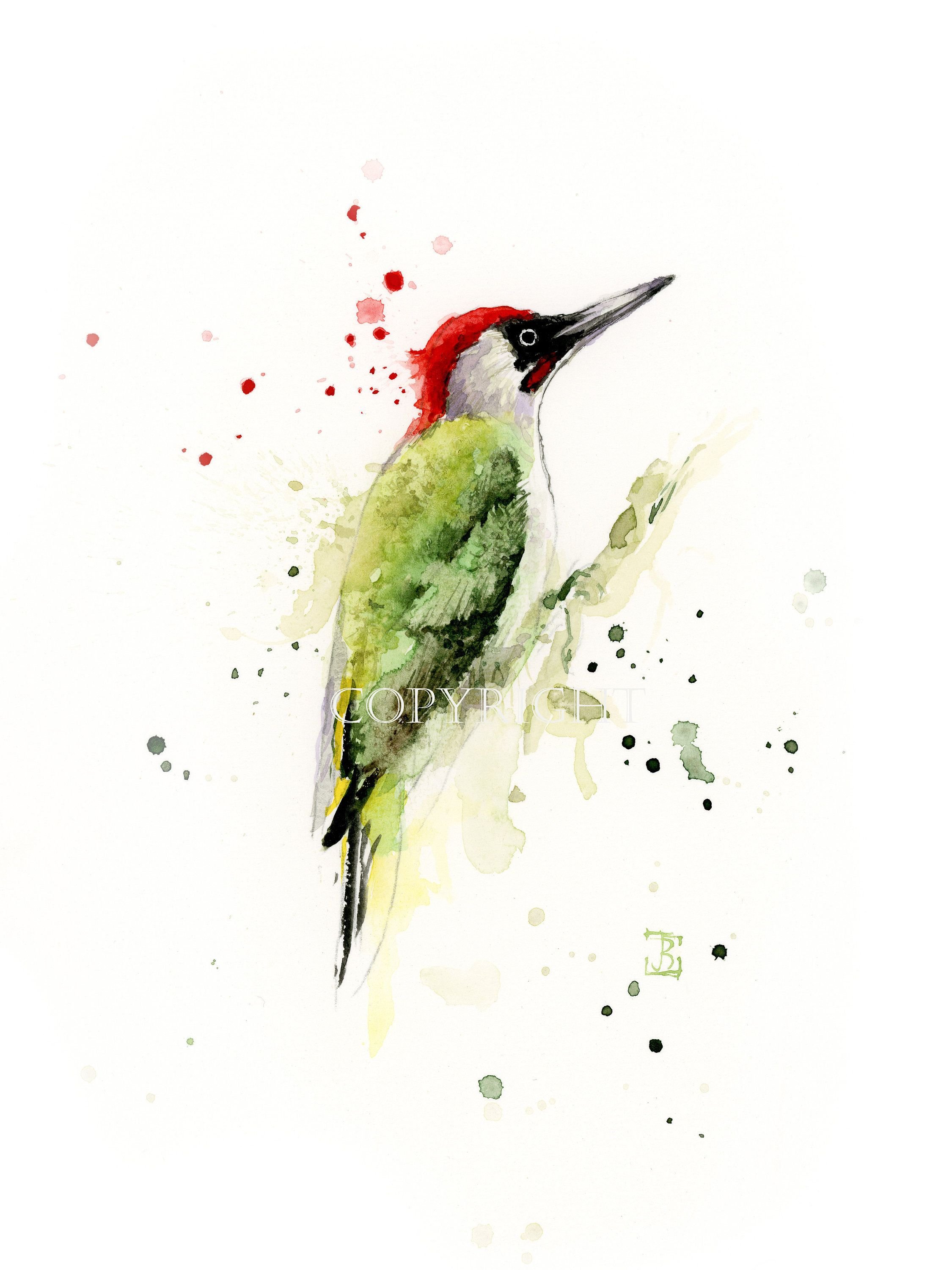 ![Зеленый дятел акварель]()