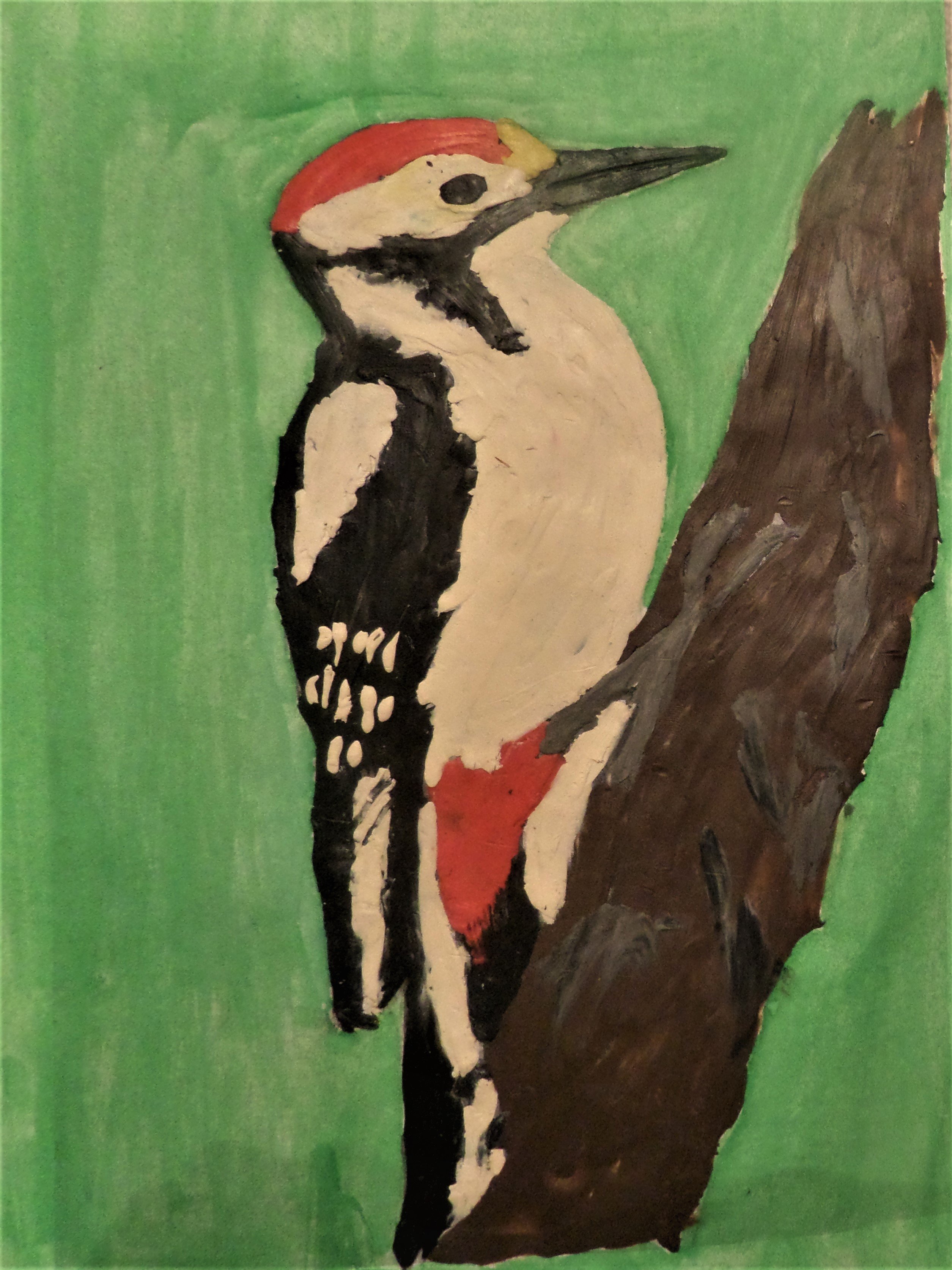 Дятел гуашью