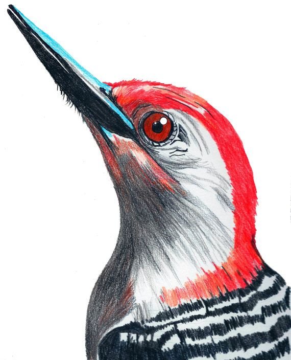 ![Дятел скетч акварель]()