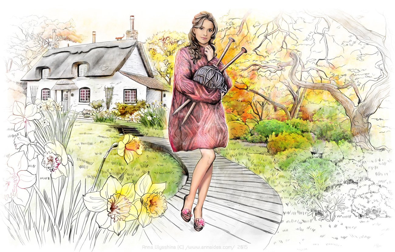 Акварельные иллюстрации Knitting