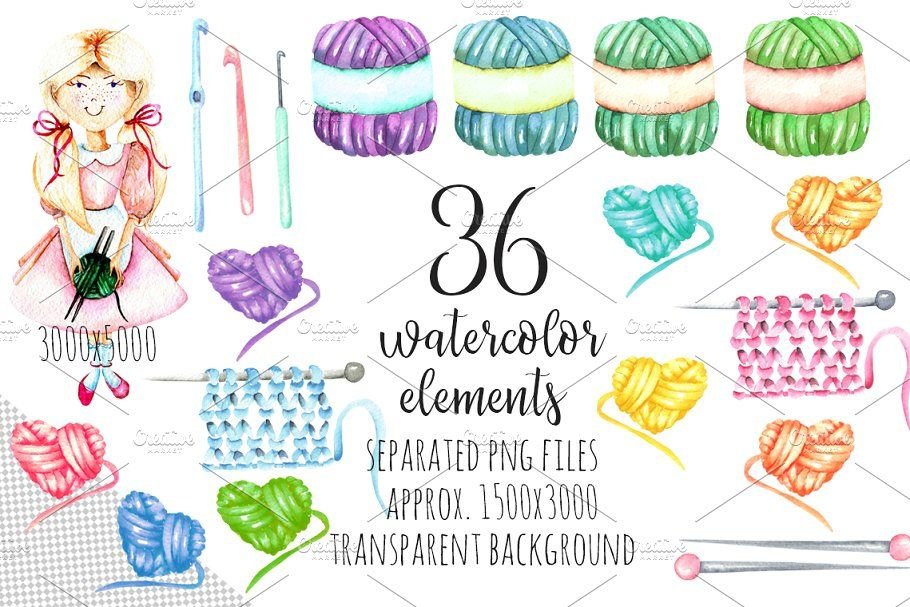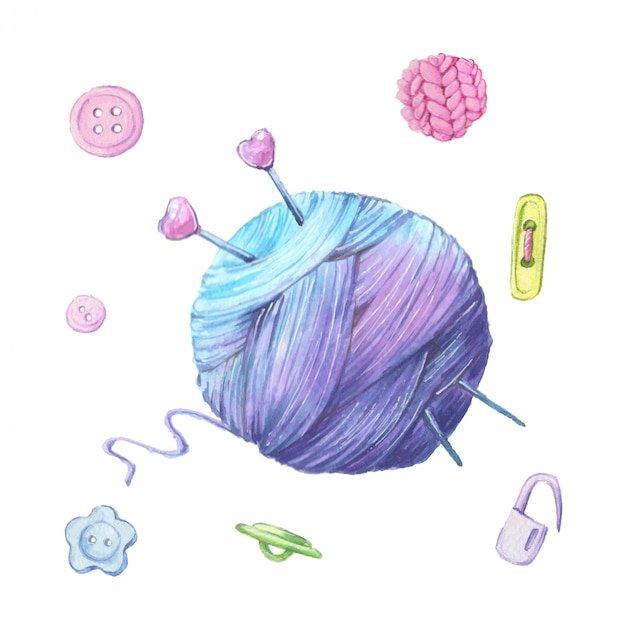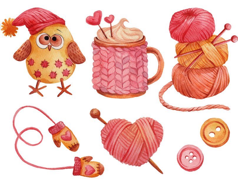 ![Акварельные иллюстрации Knitting]()