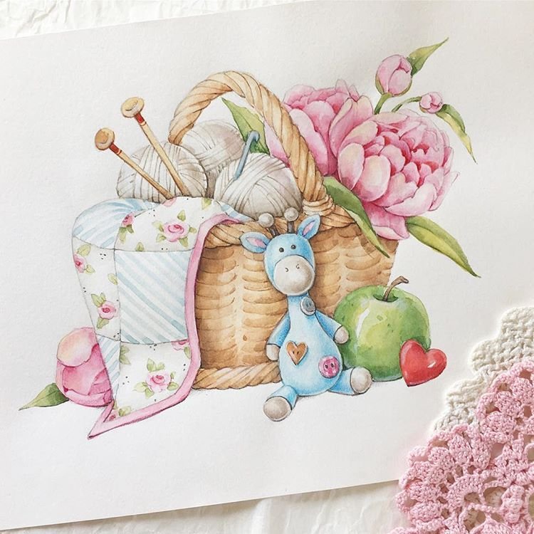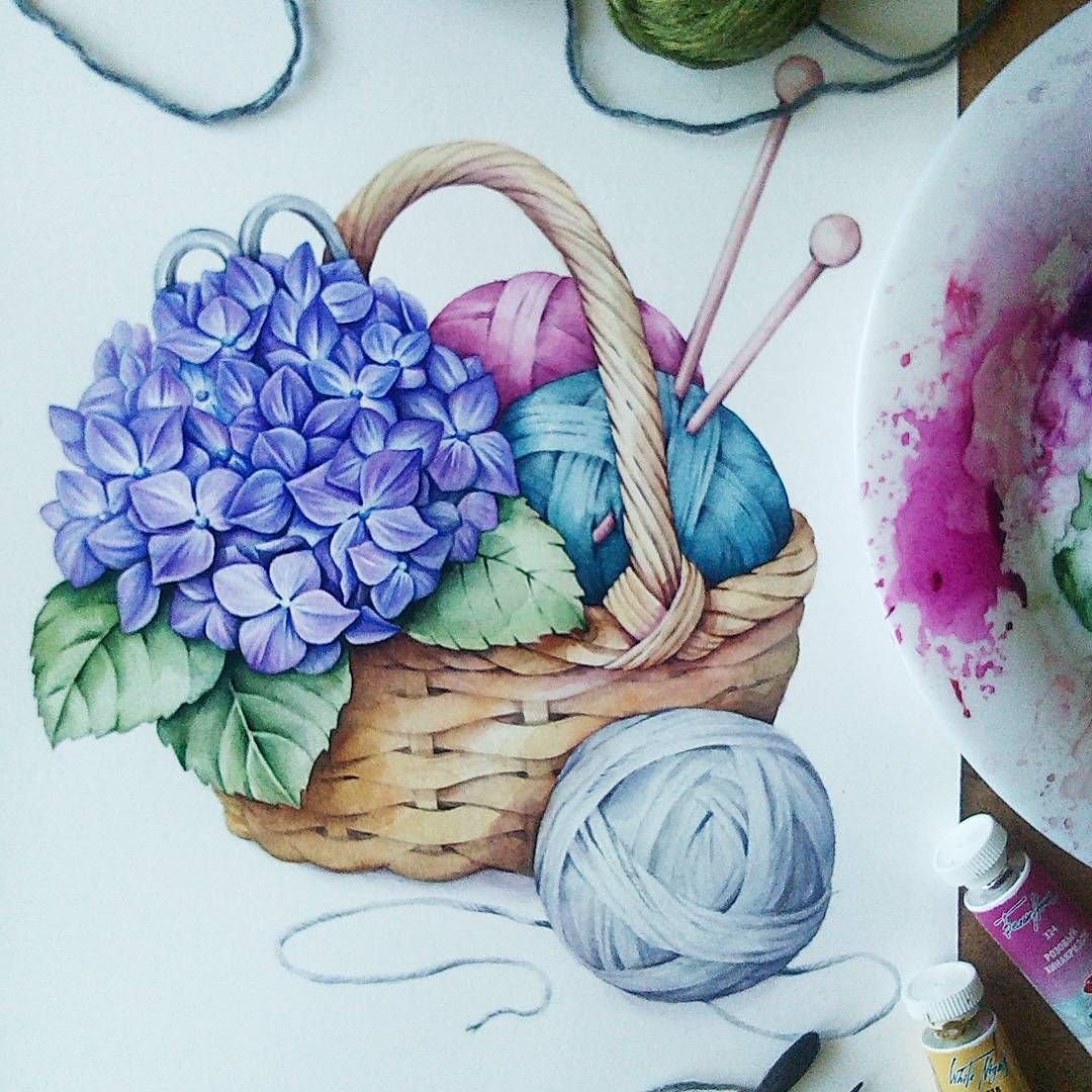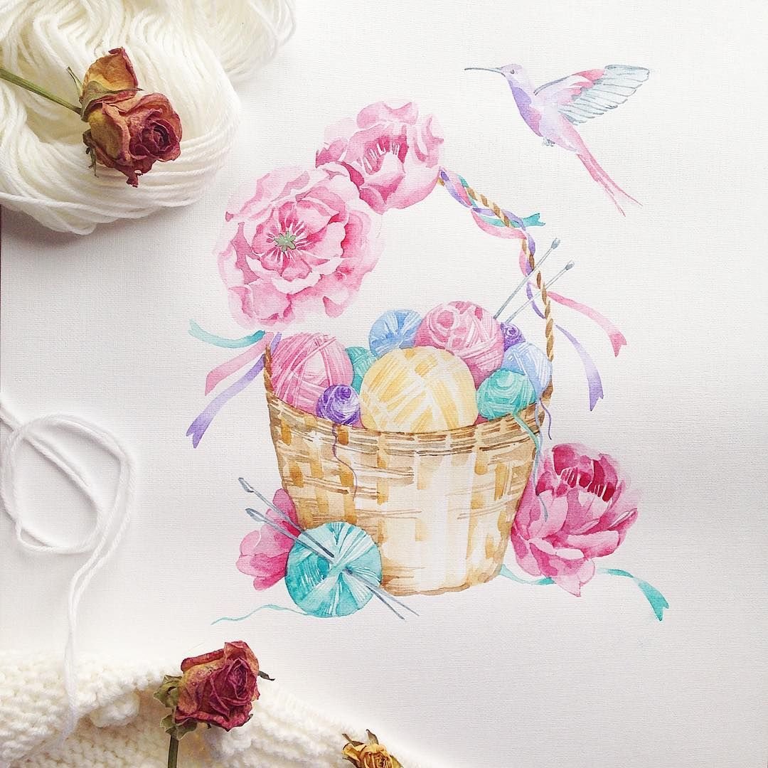 ![Плетеная корзинка акварелью]()
