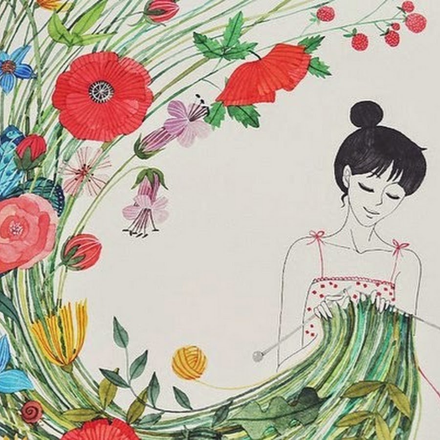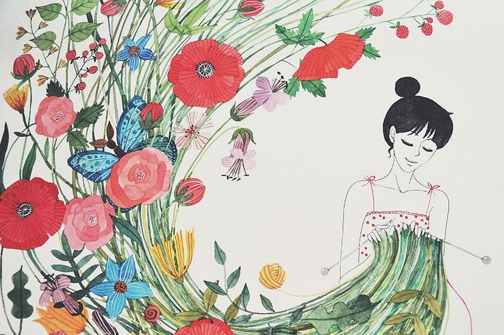 ![Девушка вязальщица арт]()