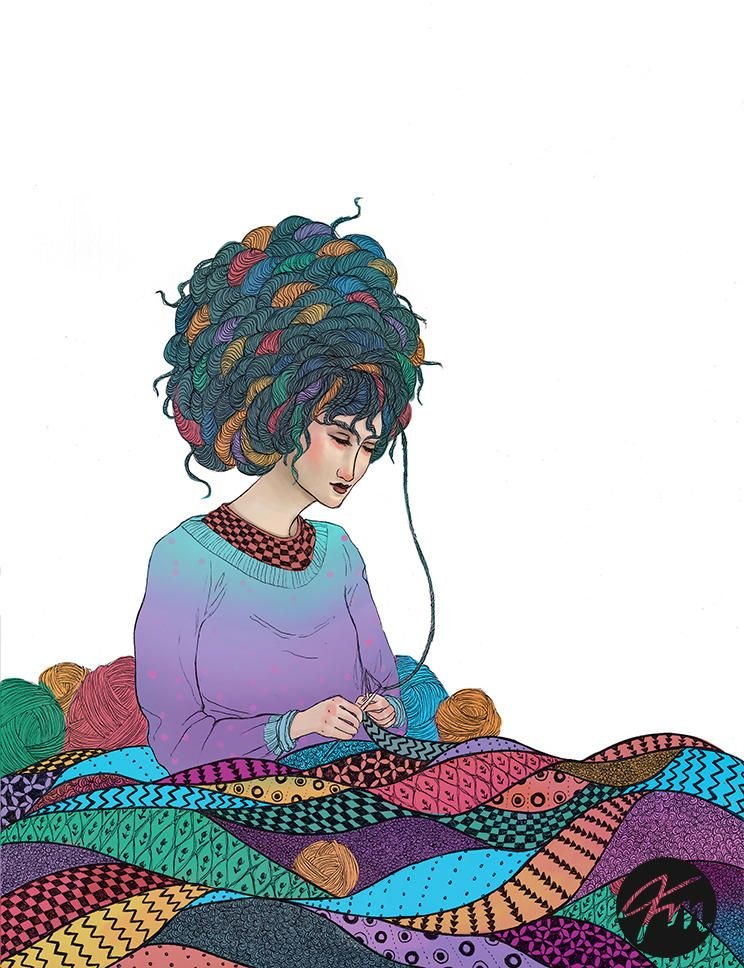 ![Иллюстрации вязальщица]()