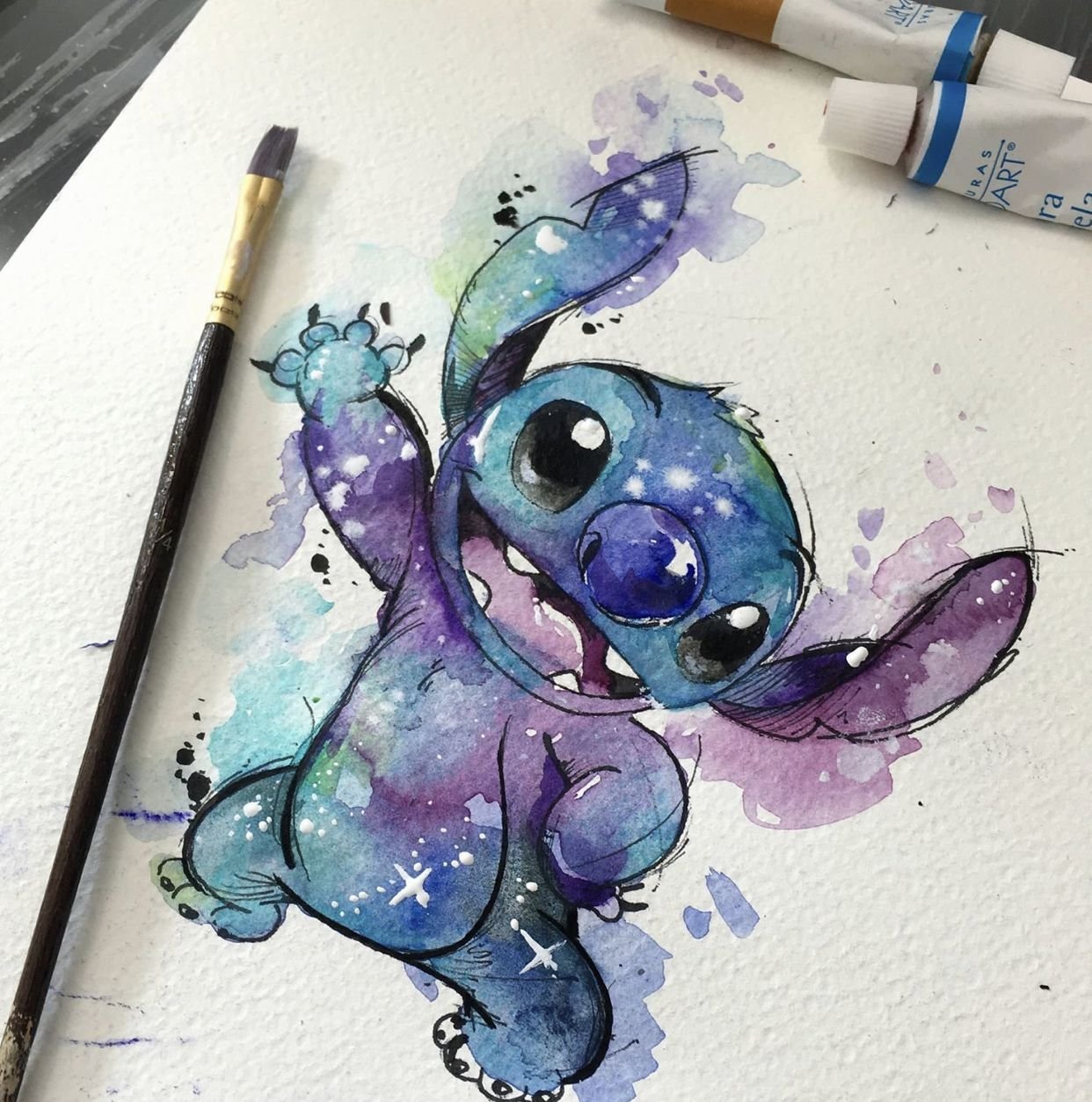 ![Лило и Стич акварель]()