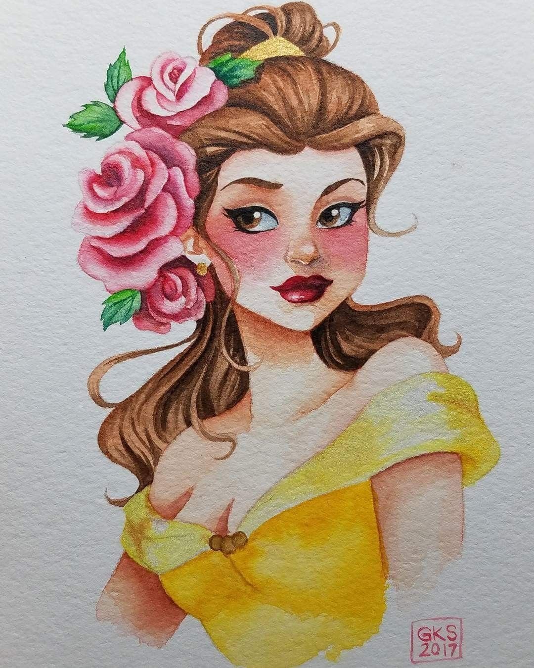 ![Принцессы Дисней Белль акварелью]()