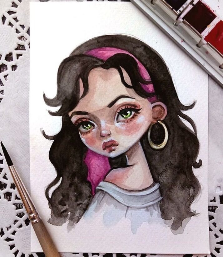 ![Диснеевские принцессы акварелью]()