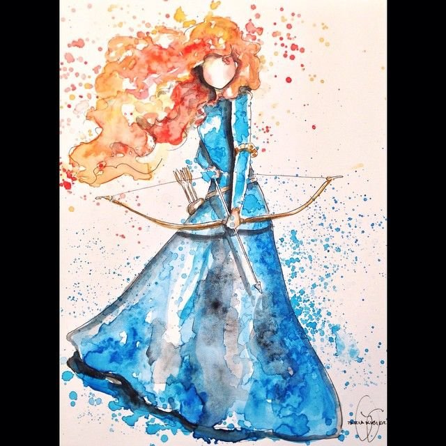 ![Мерида Дисней рисунок акварелью]()