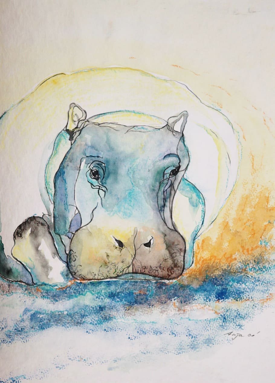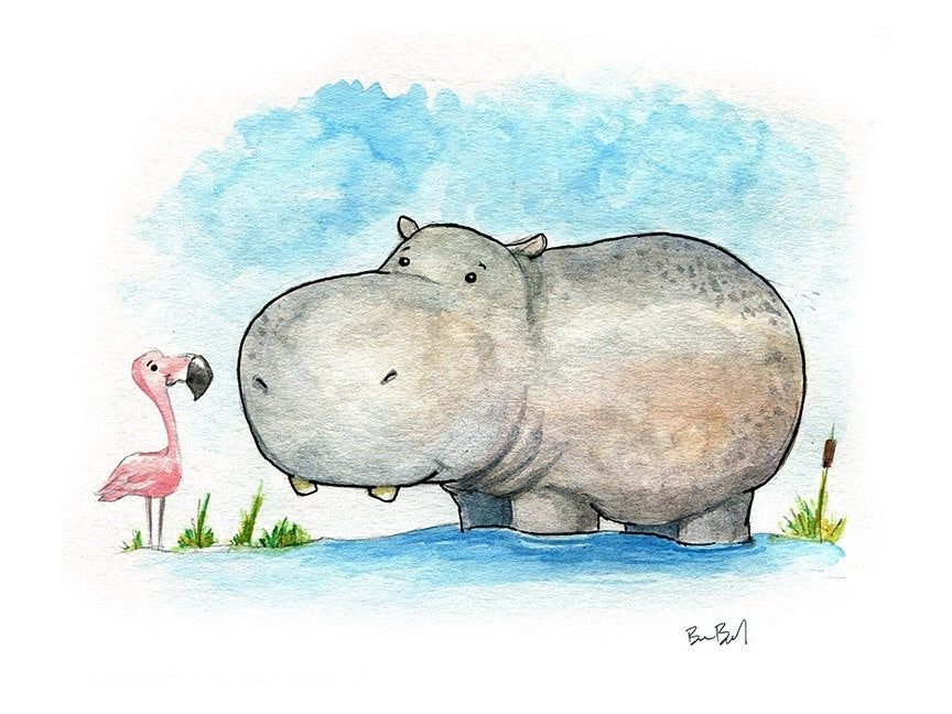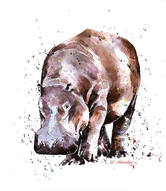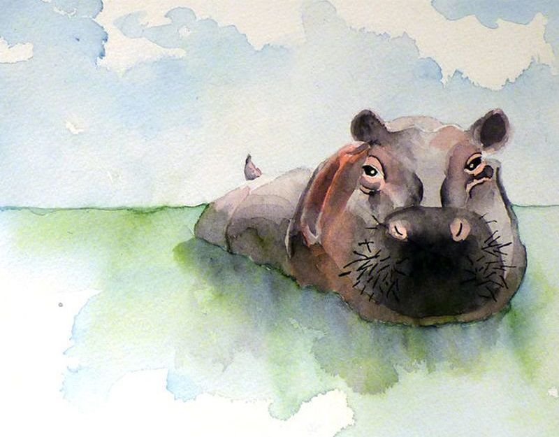 Рисунок бегемот акварель (42 фото)