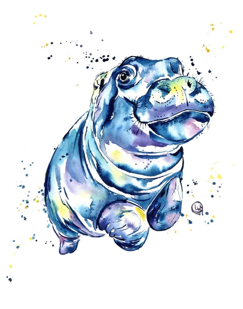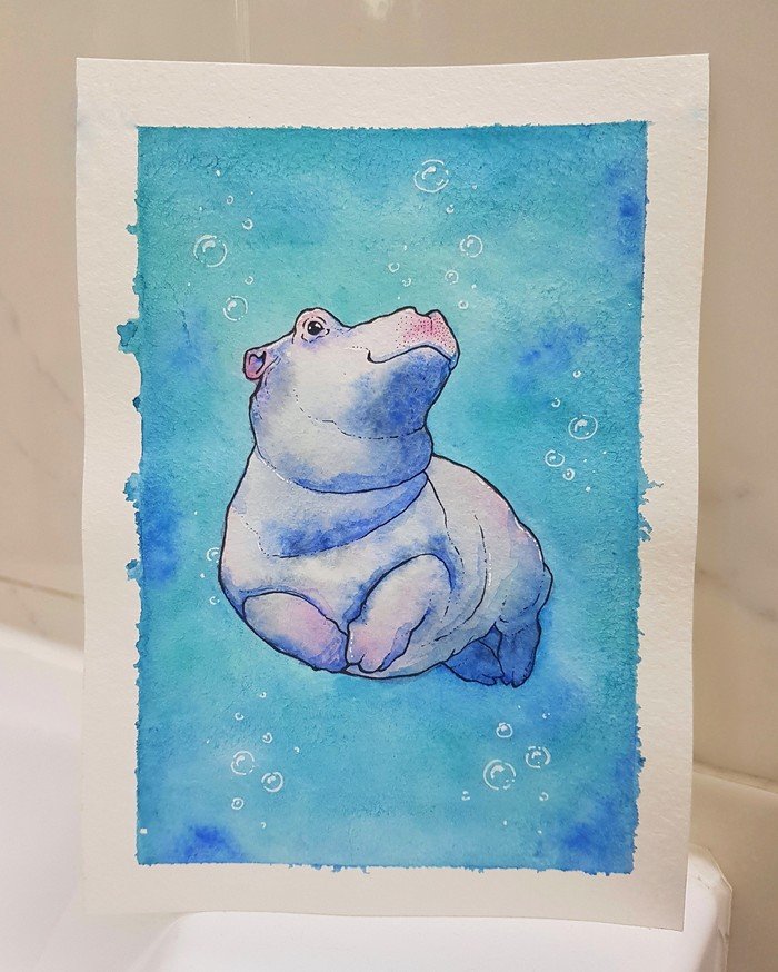 ![Бегемотик акварель]()