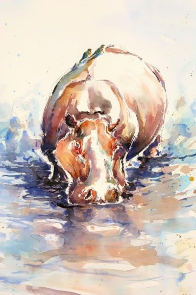 ![Бегемот акварелью]()