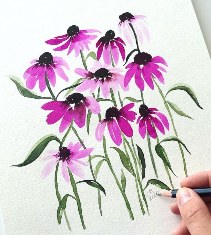![Эхинацея акварель]()