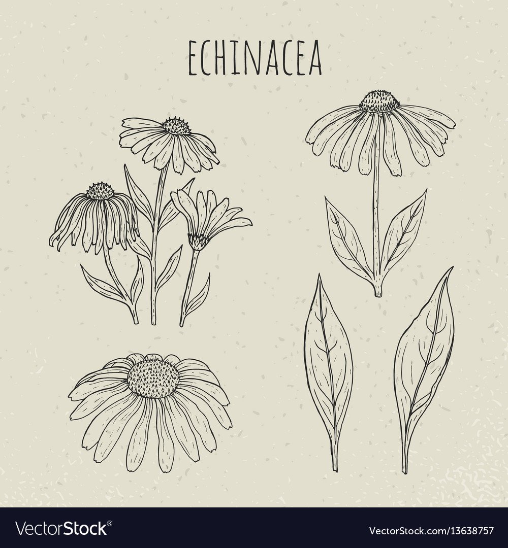 ![Эхинацея скетч черно-белый]()