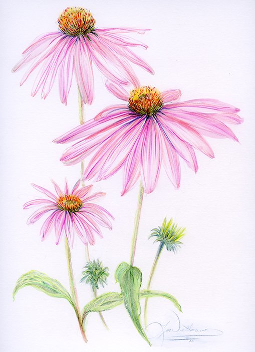 ![Эхинацея живопись]()